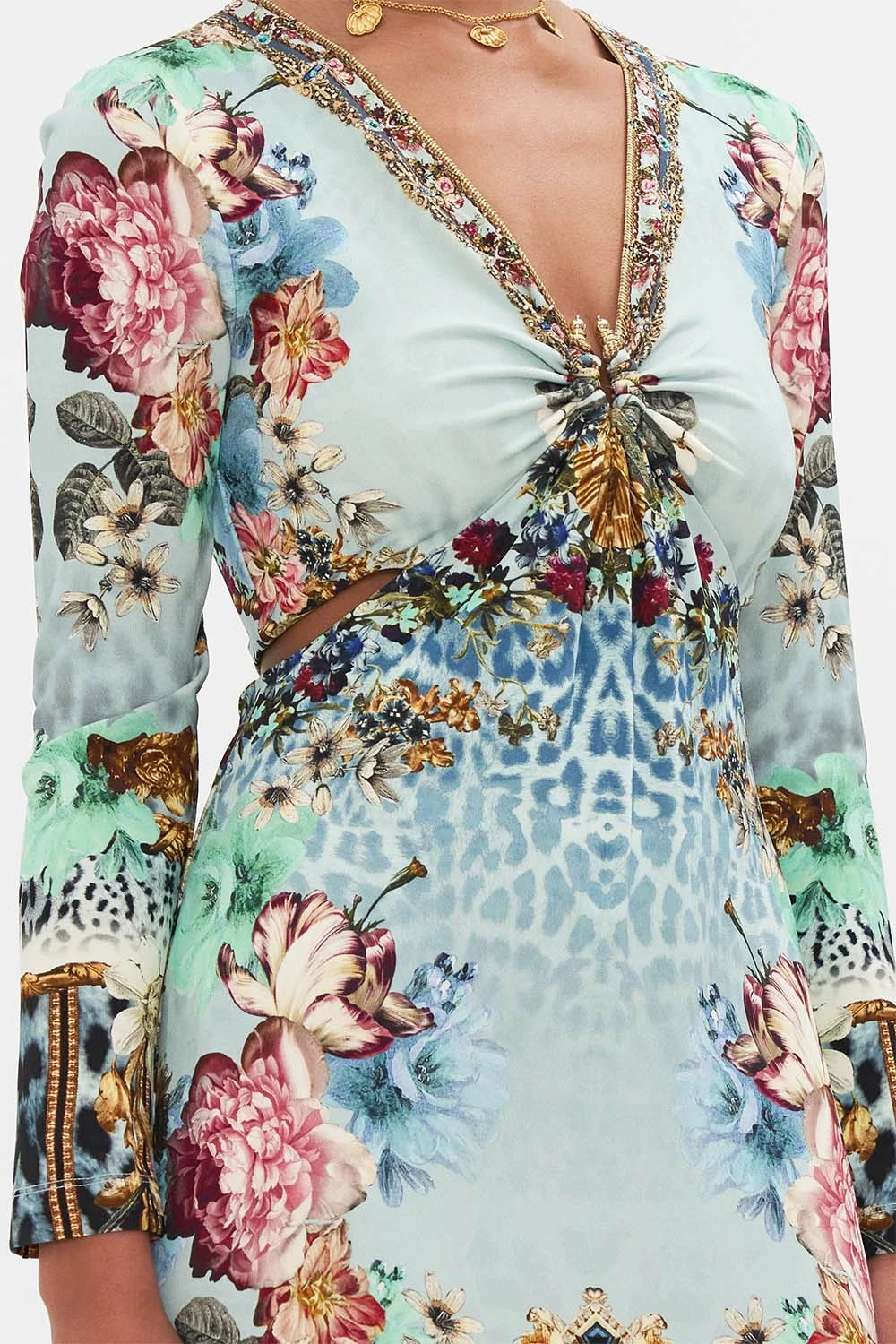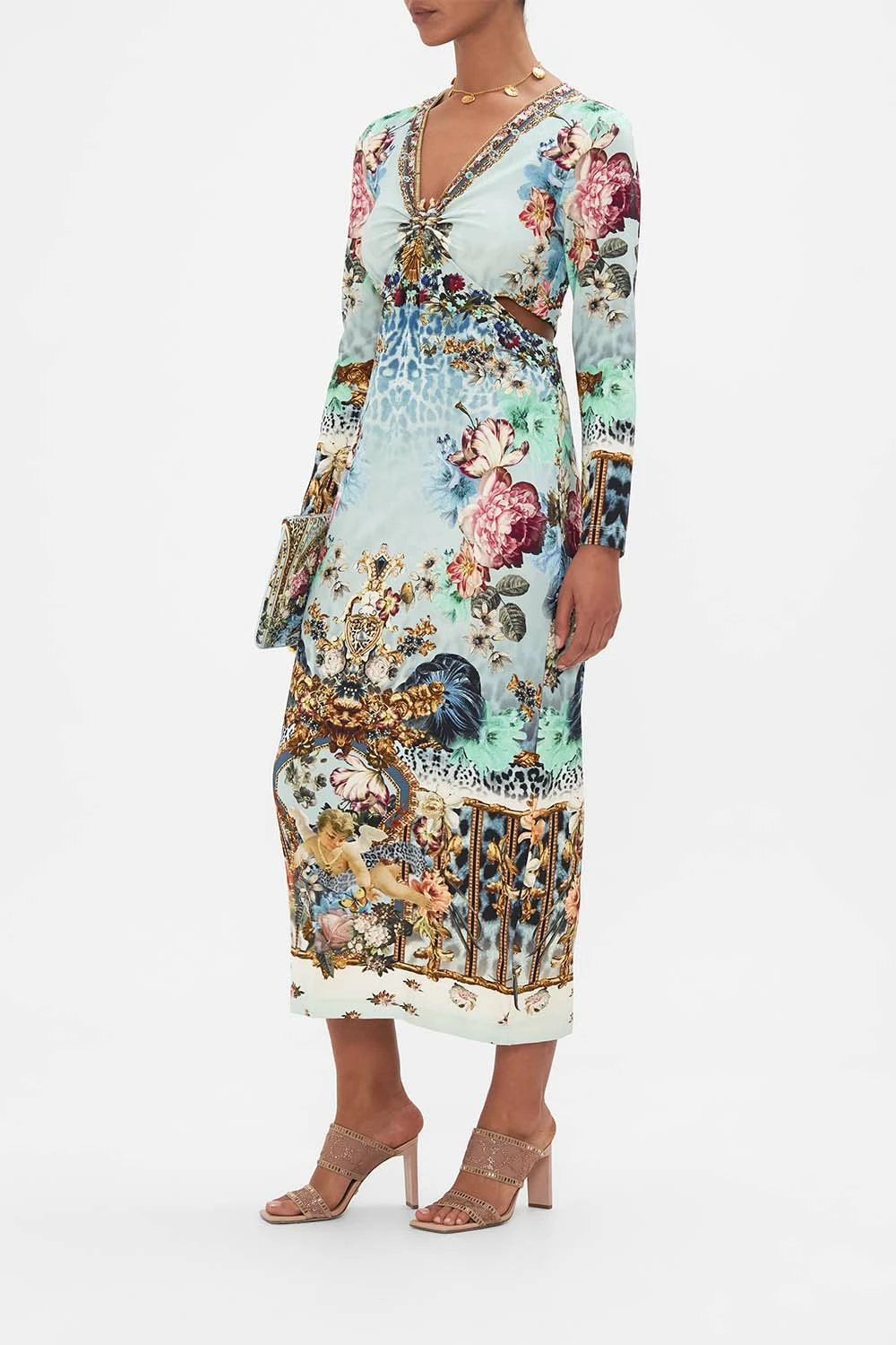 The Letters To Leo Cut Out Jersey Dress With Hardware echoes the sweet symphony of fresco blues awashed in opulent florals and lavish leopard. This luxurious CAMILLA jersey dress is home to deep V neckline that flows into gilded hardware detailing that holds delicate cut out details throughout the body. Intricately finished with signature CAMILLA crystals for added opulence. Lovingly handcrafted, designed in Australia. Explore more from the Amore Mio collection.
