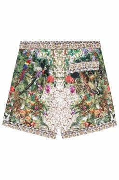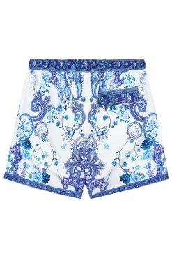 The A Sonnet For Satine Elastic Waist Boardshort is a bold and luxurious swim short for the print-loving gentleman. A vibrant sea of blue is punctuated with vintage French florals in warm hues of red and pink. Featuring an elastic waist, side pockets and additional Velcro back pocket, this luxe swim short is crafted from a sun safe fabric. Pair back with classic white tee for a fun beach look.