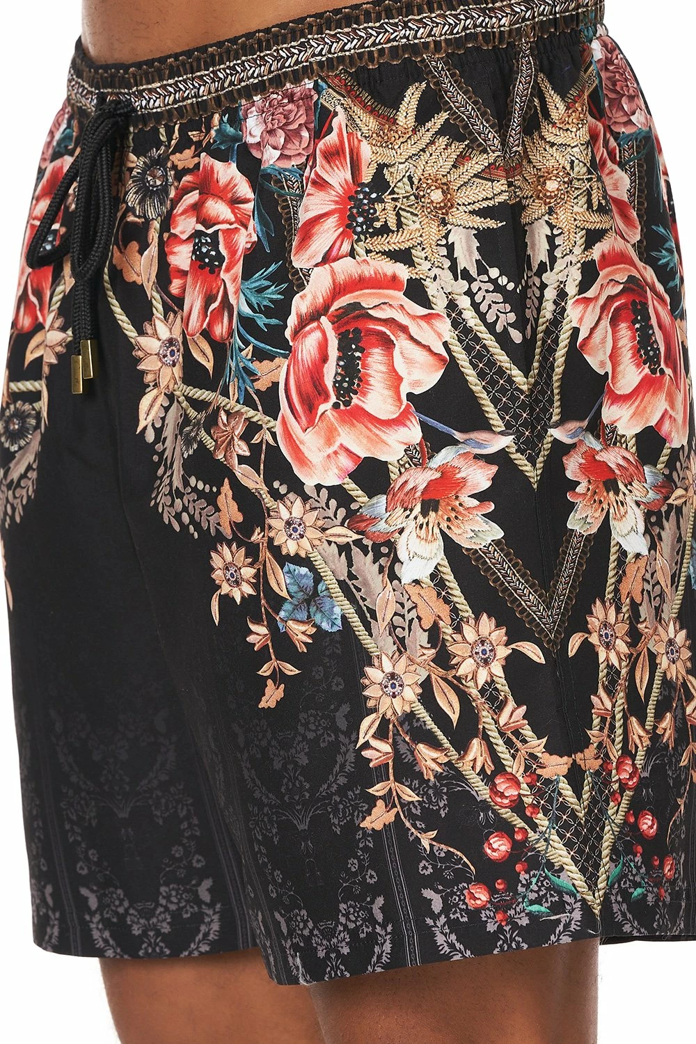 Expertly crafted from a luxe sun safe fabric, the Belle Of The Baroque Elastic Waist Boardshort is a dramatic display of ornate wonder inspired by baroque artistry. Styled with an elastic drawstring waist, this moody swim short features side pockets in addition to a useful velcro back pocket. For a decadent look, style with the matching Belle Of The Baroque Men’s Long Sleeve Tee.