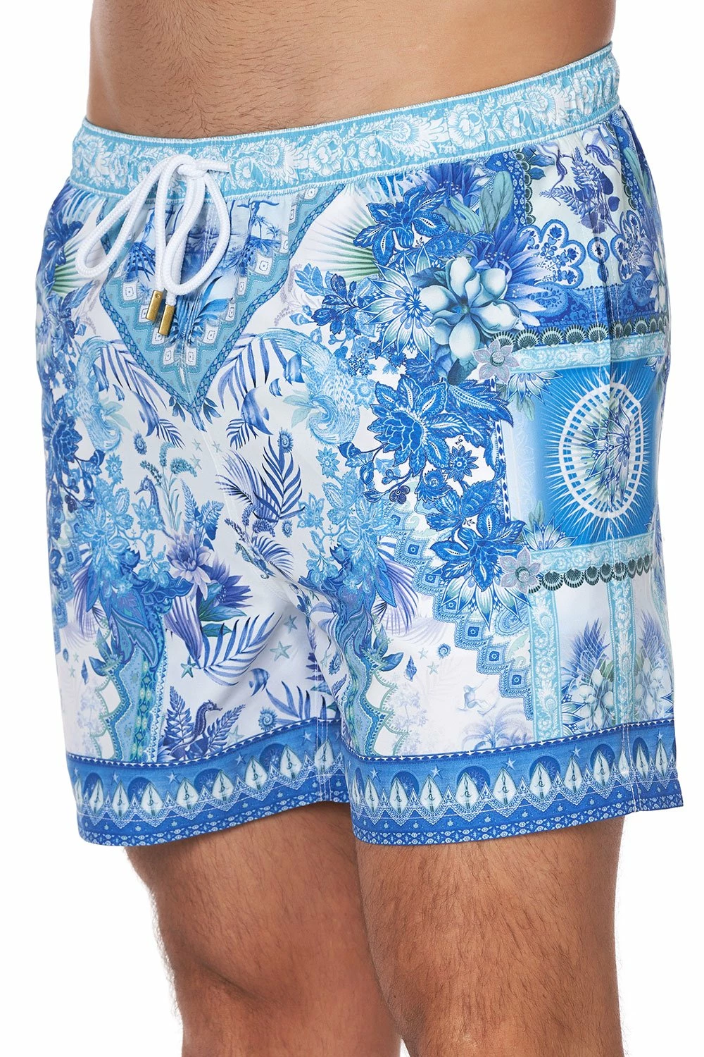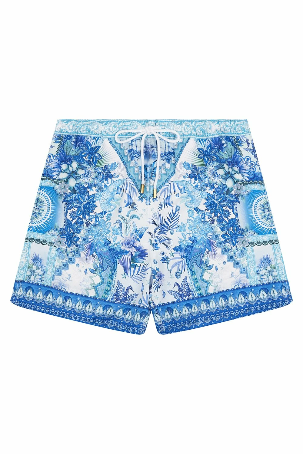 With Mother Earth’s spirit in mind, our Cali Dreaming Elastic Waist Boardshort is an ode to the ethereality of eighties California and the sun-kissed surfers who ruled the coasts. Crafted from recycled polyester, the gaze is enamoured with soft blue hues and pops of dainty ivory. This sustainable swim short features an elasticated drawstring waist, a cropped mid-length and a relaxed silhouette.