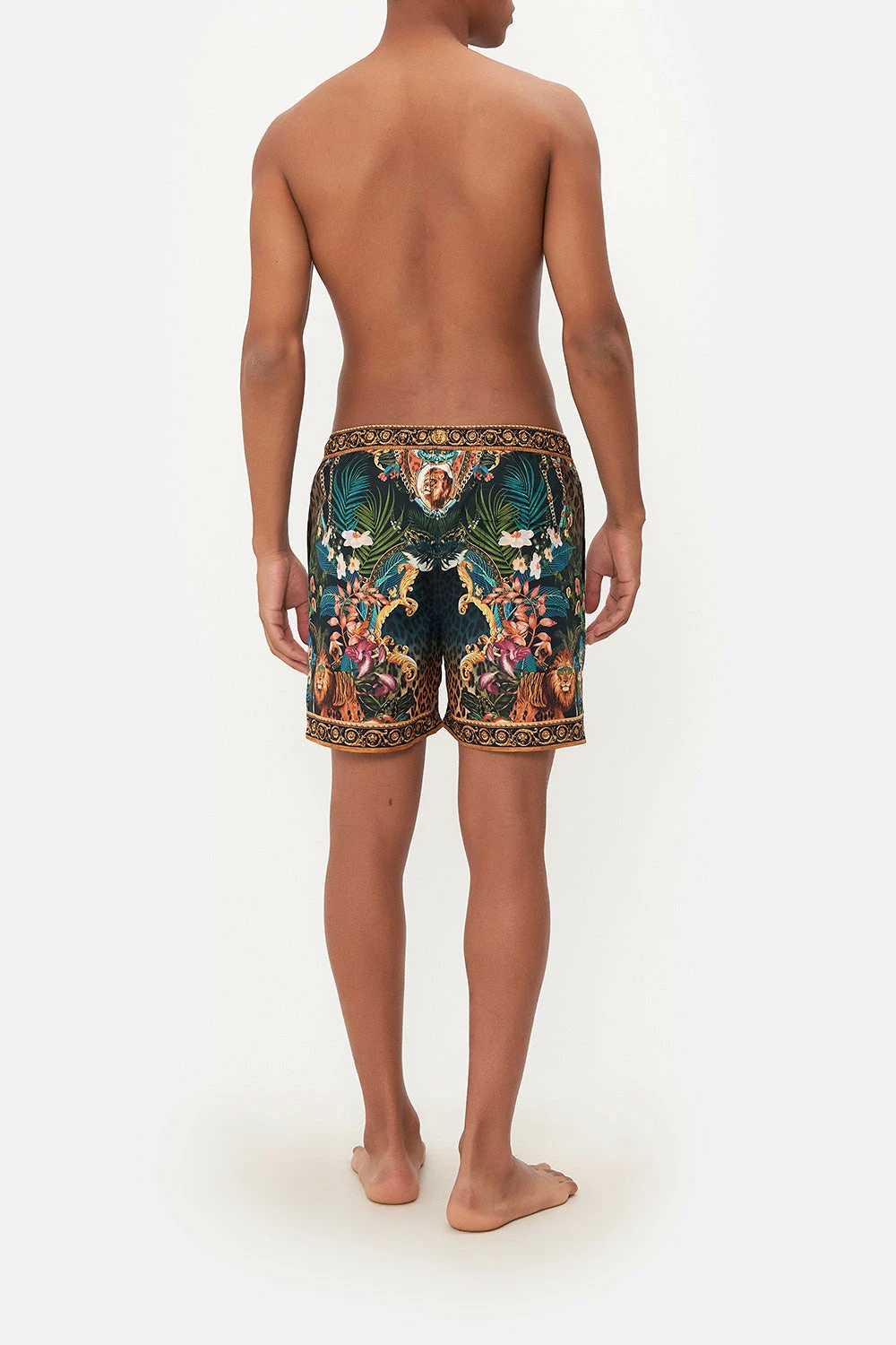 The Fearless Felis Elastic Waist Boardshort is enwrapped in a sea of rich midnight hues enveloped by gold baroque details, cascades of forest ferns and soft botanicals dipped in honey hues that bloom from emerald vines. Crafted from recycled polyester retrieved from our seas, this luxury boardshort features an elasticated drawstring waist, pocket details with a velcro fastening and a relaxed mid-length silhouette.