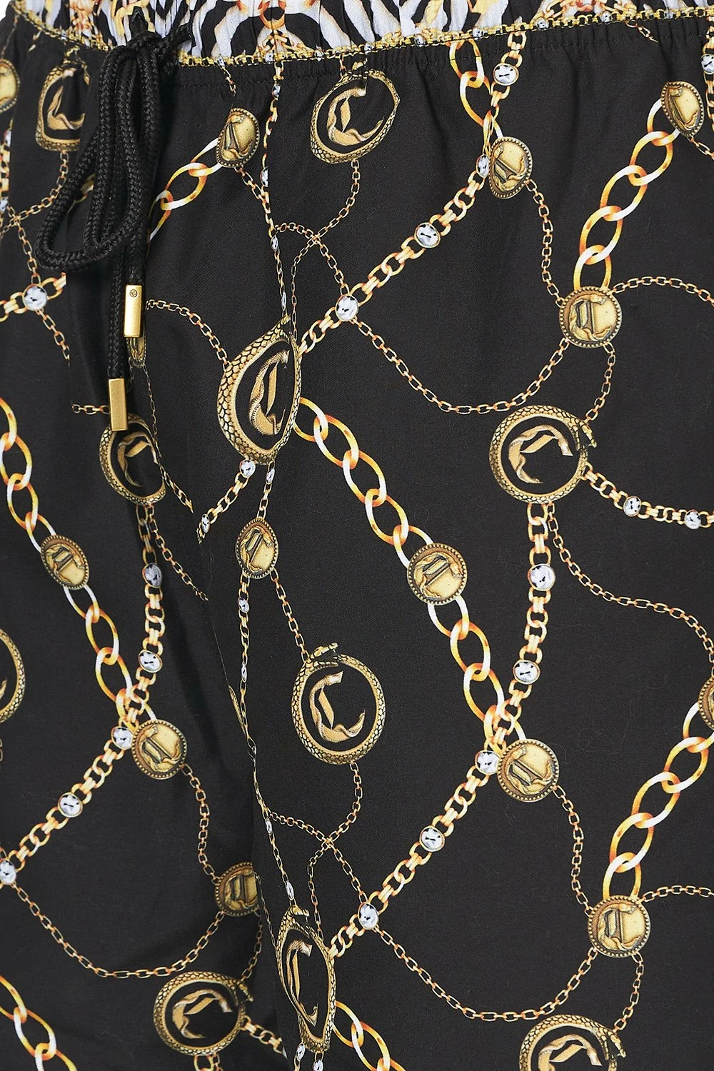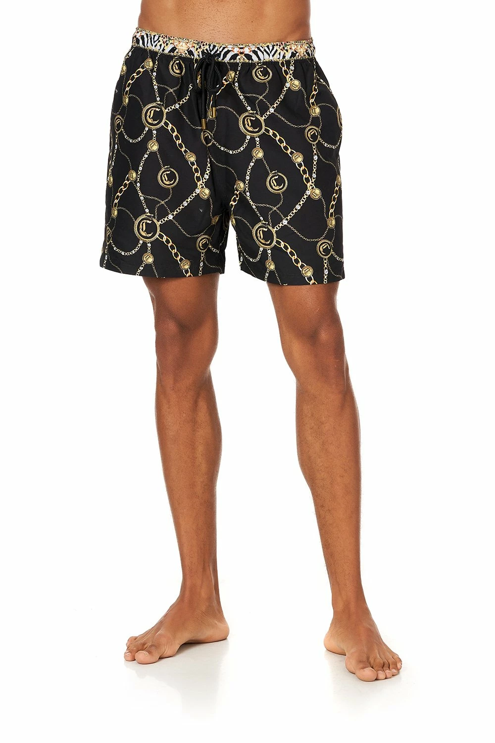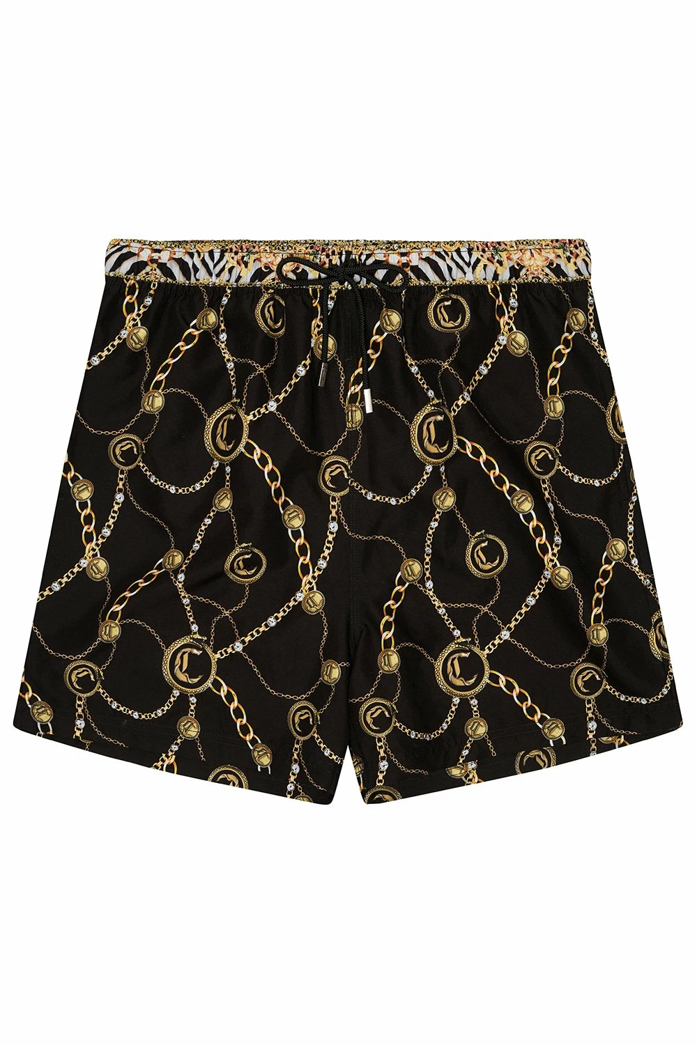 Opt for luxury amidst the sun and sand this season with the Golden Era Elastic Waist Boardshort. Taking inspiration from the opulence of the nineties, golden chains are weaved across the classic black silhouette. Rendered from recycled polyester, this summer short is home to a mid-length cut, three pockets for total ease and a drawstring elasticated waist that sits in a zebra print contrast trim.