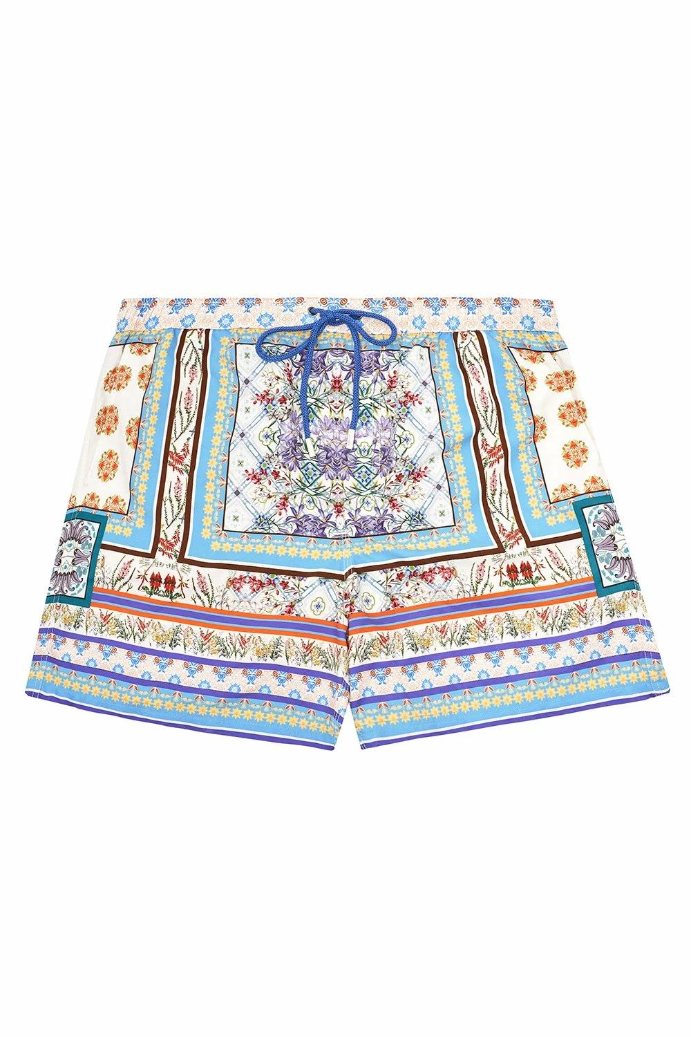 As a patchwork ode to the calm energy of the coastline, the Gone Coast Elastic Waist Boardshort exudes nautical charm. These printed swimmers feature an elasticated waist, drawstring and toggle ends, front pockets with mesh lining, as well as back patch pockets with Velcro closure.