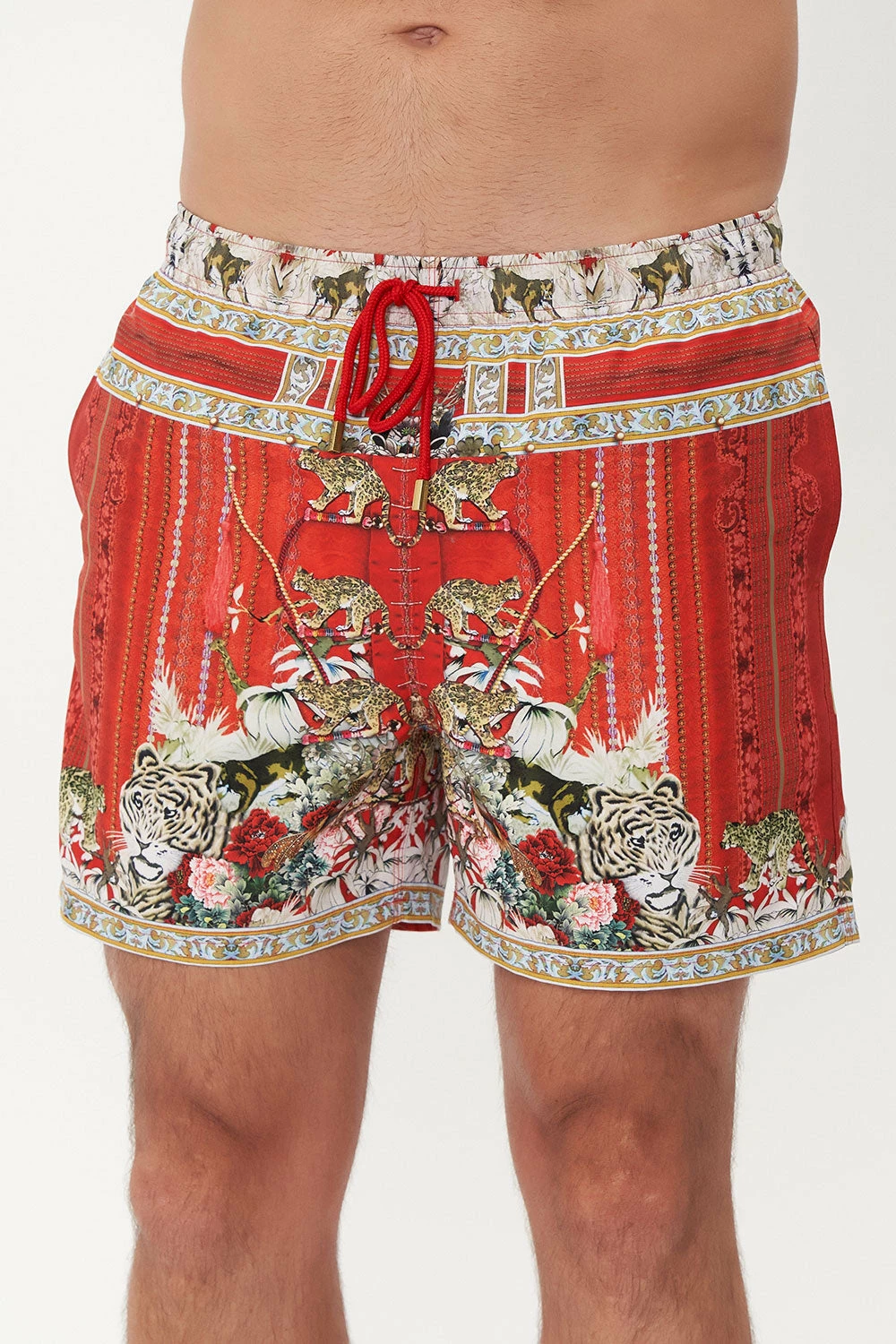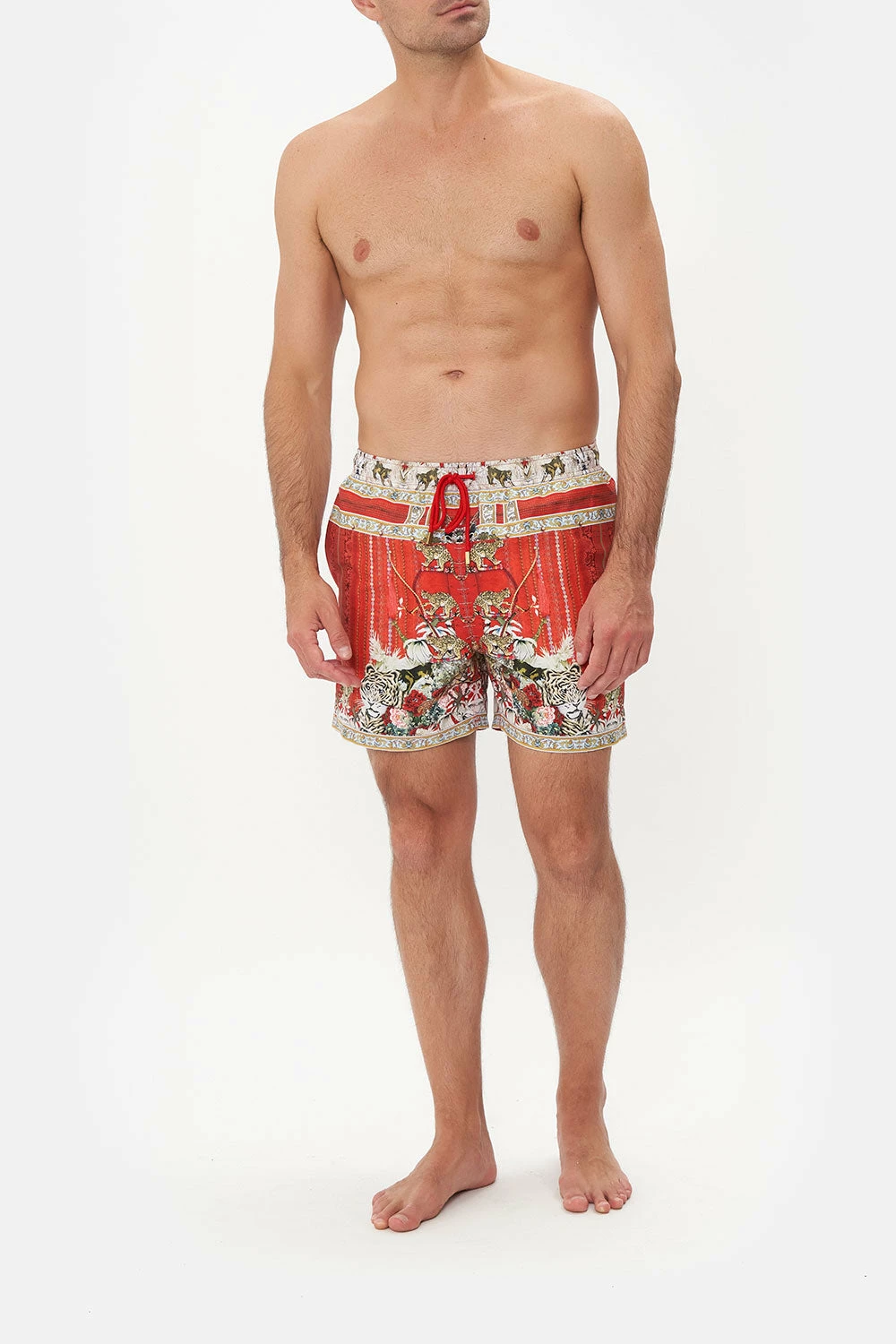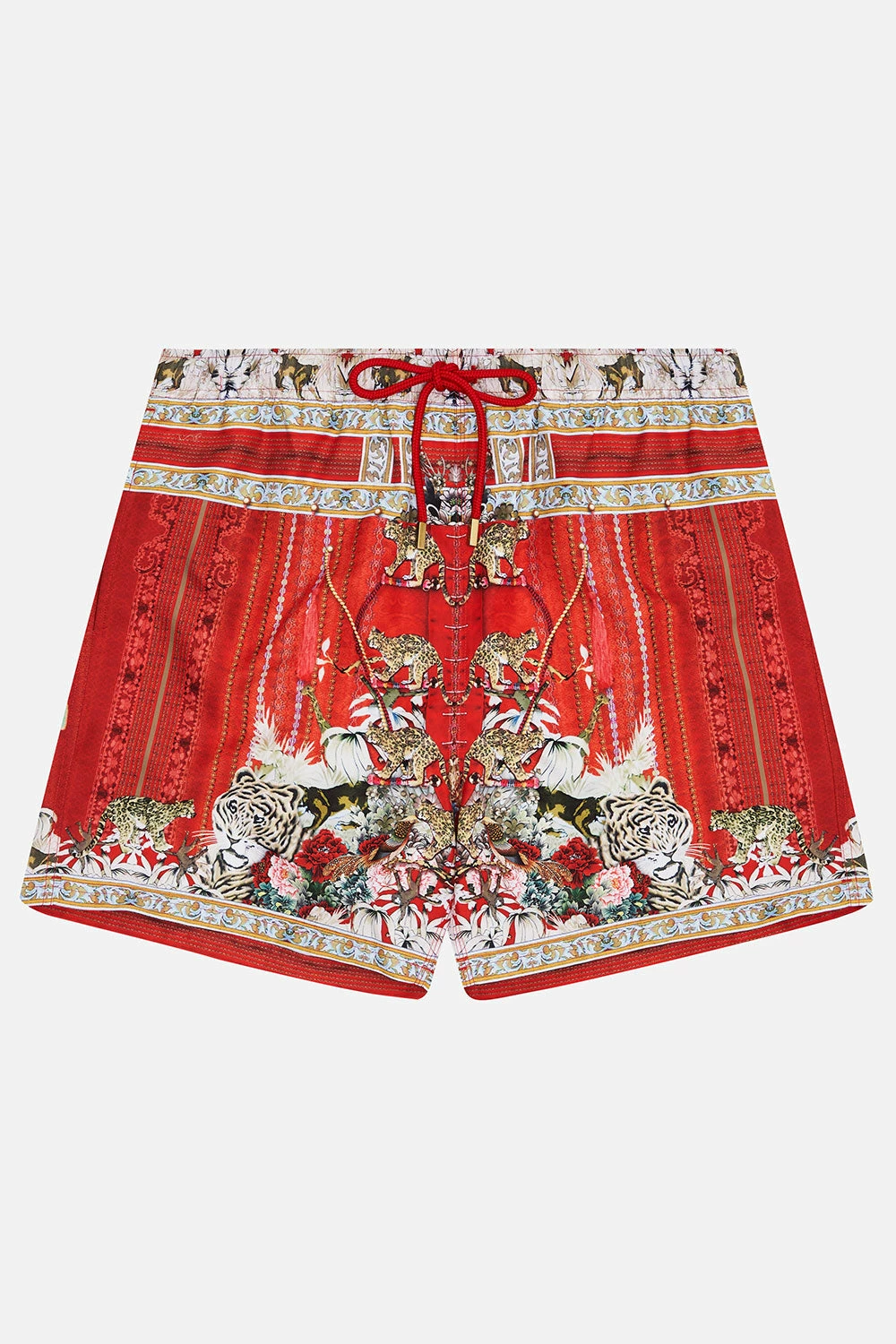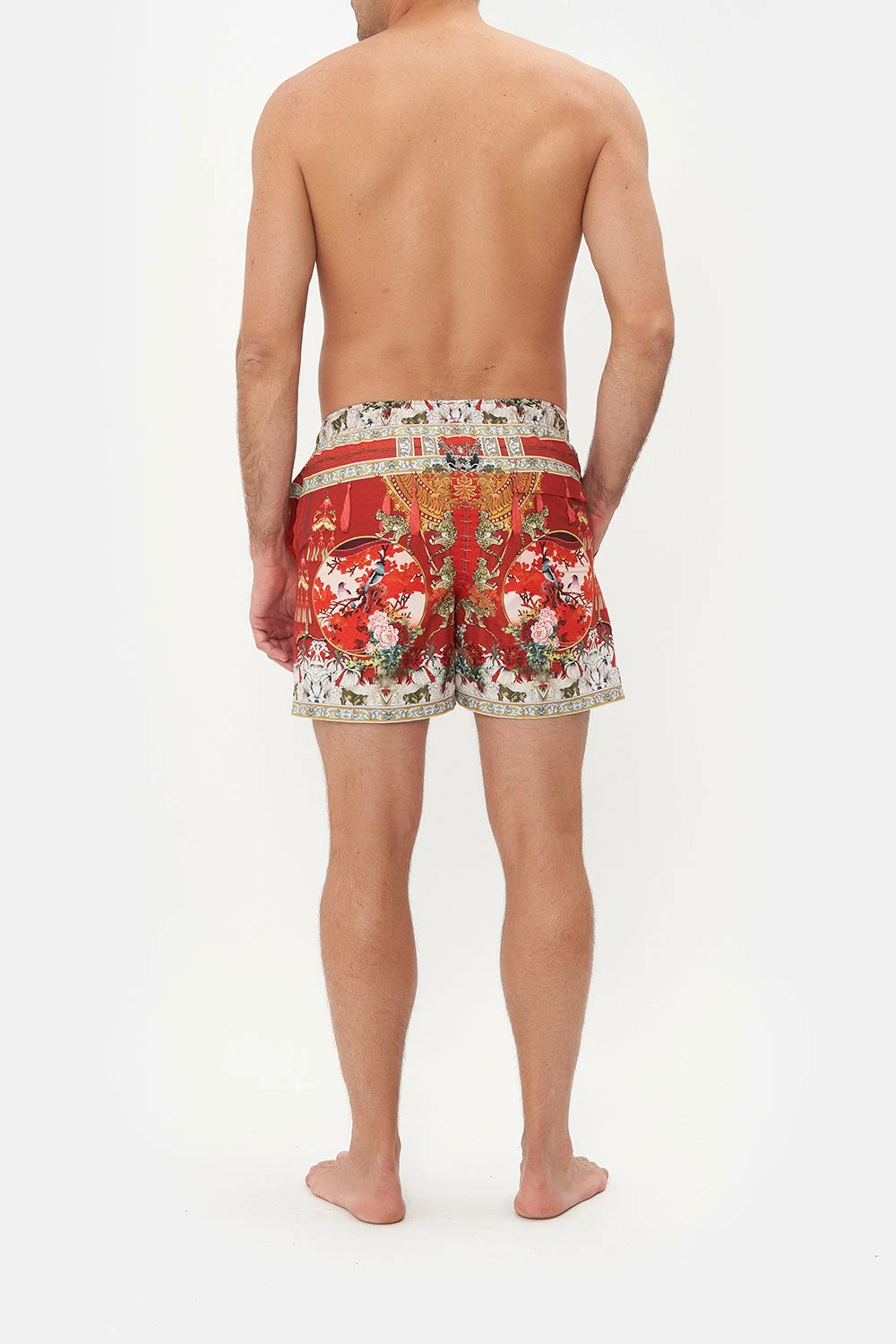 Ancient wonders meeting the sun and sea, our Hangzhou Hollywood Elastic Waist Boardshort is enwrapped in rich imperial red that meets the stalking eye of the tiger, ivory botanicals that bloom from beneath and the soft blossom of the peony. Crafted from recycled polyester retrieved from our seas, this luxury boardshort features an elasticated drawstring waist, pocket details with a velcro fastening and a relaxed mid-length silhouette.