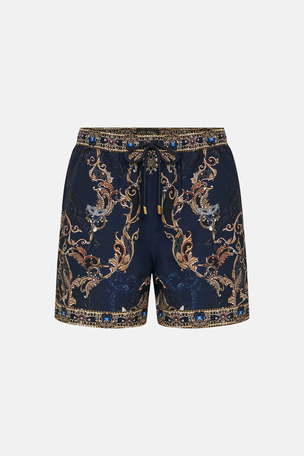 The Moonlight Melodies Elastic Waist Boardshort delves into an arrangement of gilded gold and deep ebony flourishes, highlighted with strands of chains and embellished motifs. Crafted from recycled polyester retrieved from our seas, this luxury boardshort sports an elasticated drawstring waist for your most perfect fit, pocket details with a velcro fastening and a relaxed mid-length silhouette. Lovingly handcrafted, designed in Australia, explore more from The Moral Of The Story: Act II collection.