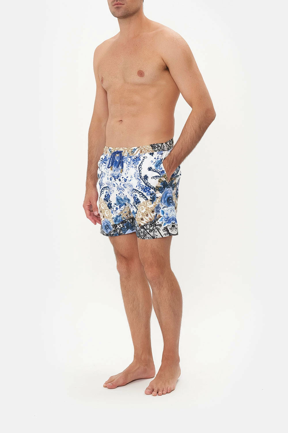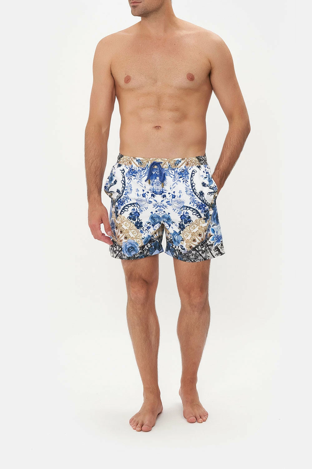 Embracing Mother Earth with her blooming botanica, the Reign Of Roses Elastic Waist Boardshort is enwrapped in a sea of white defined by deep blue bouquets and ornate golden details. Crafted from recycled polyester retrieved from our seas, this luxury boardshort features an elasticated drawstring waist, pocket details with a velcro fastening and a relaxed mid-length silhouette.