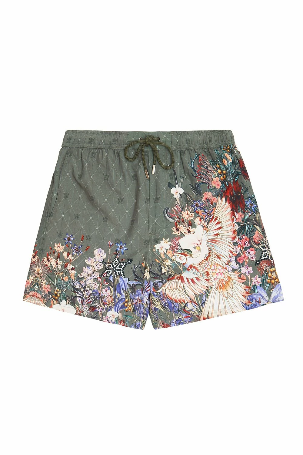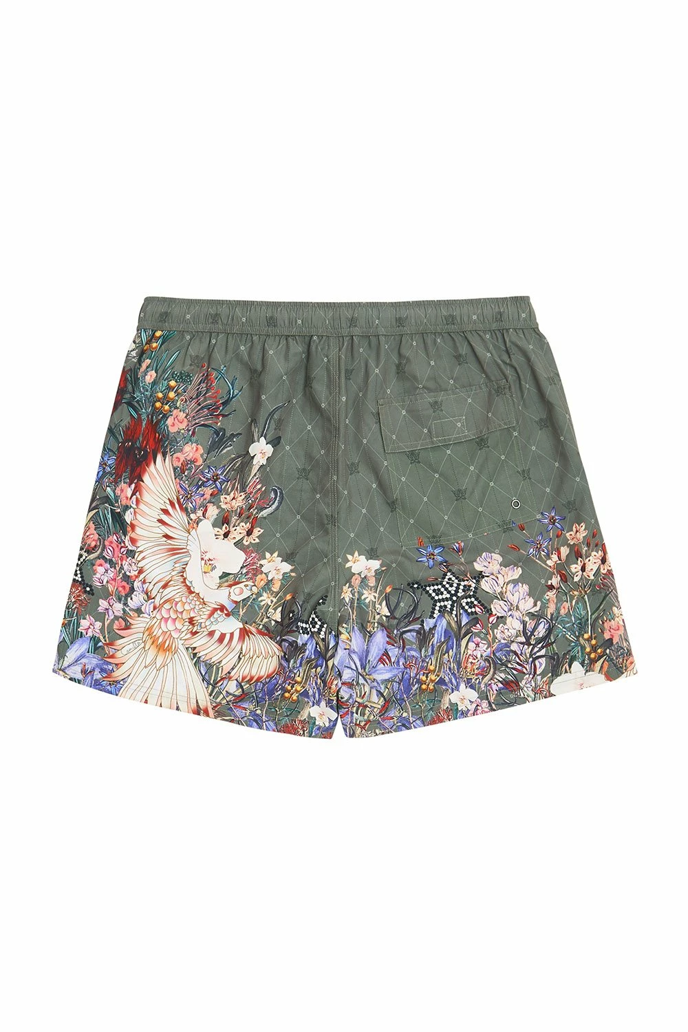 In honour of the rustic botanical arrangements at country socials, the Watchful Wings Elastic Waist Boardshort embraces Australiana. With olive tones, these men’s swimmers feature an elasticated waist with drawstring and toggle ends, practical front pockets, back patch pockets with Velcro closure, as well as sumptuous all-over print.