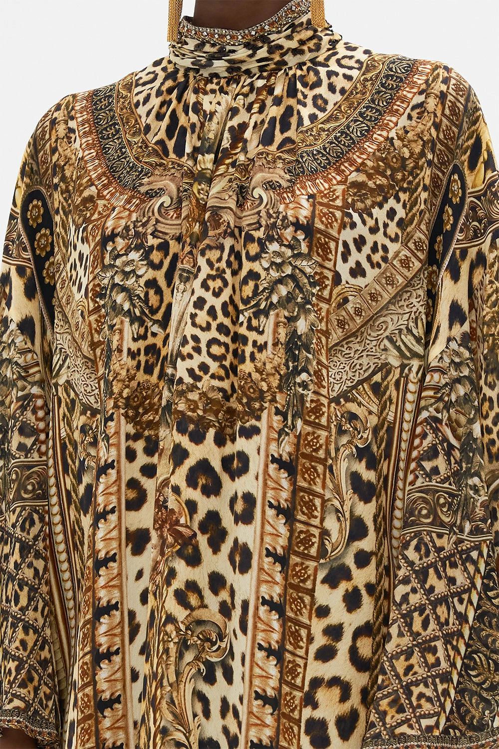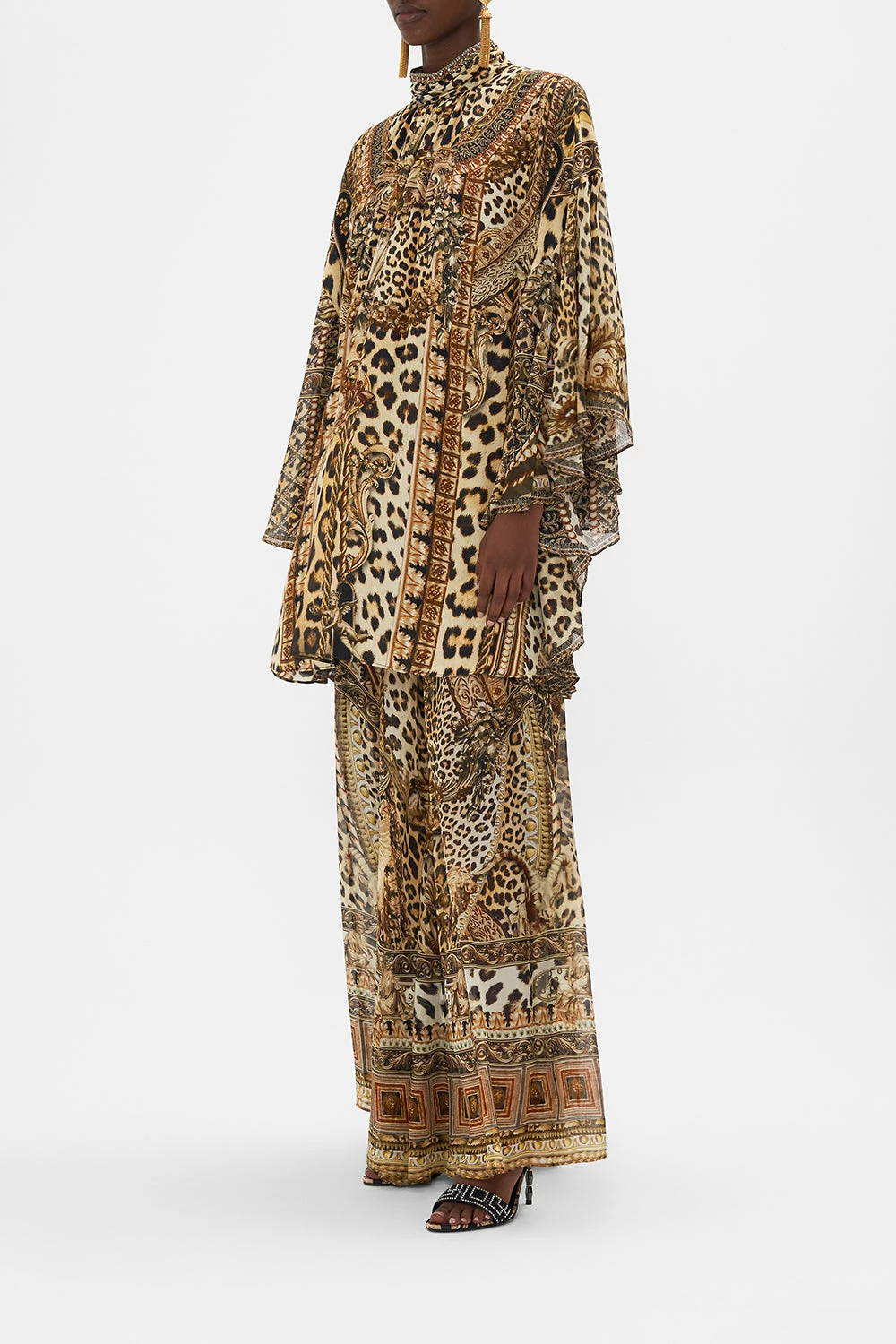 The Standing Ovation High Neck Ruffle Sleeve Blouse captures the unbridle inspirational spirit of the infamous Teatro alla Scala through a rhapsody of rich leopard print. Created in floaty silk chiffon, this luxurious silk blouse is home to an elegant back neck cut out detail, frivolously fun ruffle sleeves, a gathered collar detail that falls into a relaxed fit silhouette, and finished with signature CAMILLA crystals. To create a chic co-ord outfit pair with the Standing Ovation Sheer Wide Leg Pant. Lovingly handcrafted, designed in Australia. Explore more from the Amore Mio collection.