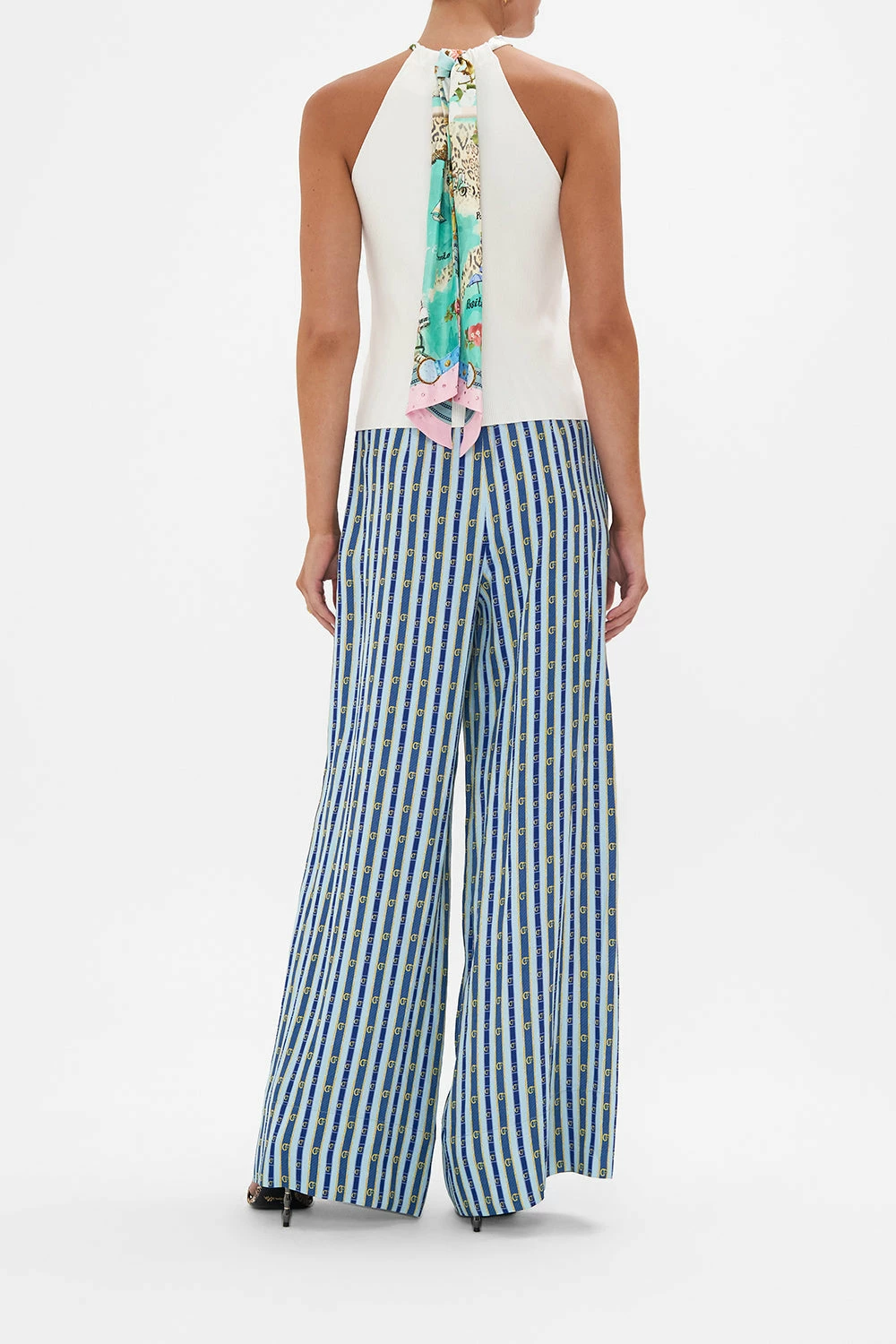 The Amalfi Lullaby Knit Scarf Top depicts the beautifully bright exuberance of the Italian coastline, capturing the essence of seaside summer bliss. Crafted in fully fashioned knitwear, this chic top is home to a contrast printed silk scarf neck tie detail finished into a chic fitted silhouette. Wear back with the Amalfi Lullaby Scarf Belt Wide Leg Pant for a chic longline silhouette. Lovingly handcrafted, designed in Australia. Explore more from the Amore Mio collection.