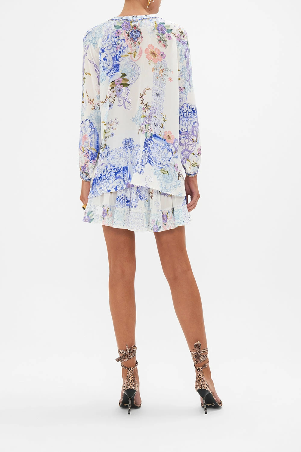 The Paint Me Positano Lace Up Blouse explores the magical pathways of intricate Italian tile mosaics entwined with delicate pastel florals. Crafted from the softness of silk, this luxury blouse is home to a relaxed silhouette adorning shimmering crystals, effortless raglan sleeves that fall into tapered cuffs and poetic lace up detailing upon the décolletage. Beautifully styled with the Paint Me Positano Lounge Pant. Lovingly handcrafted, designed in Australia. Explore more from the Amore Mio collection.
