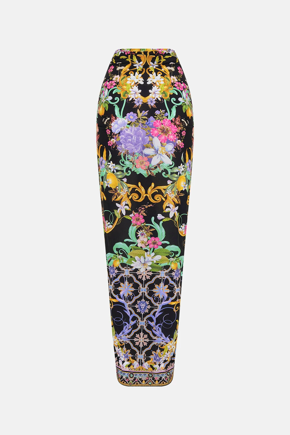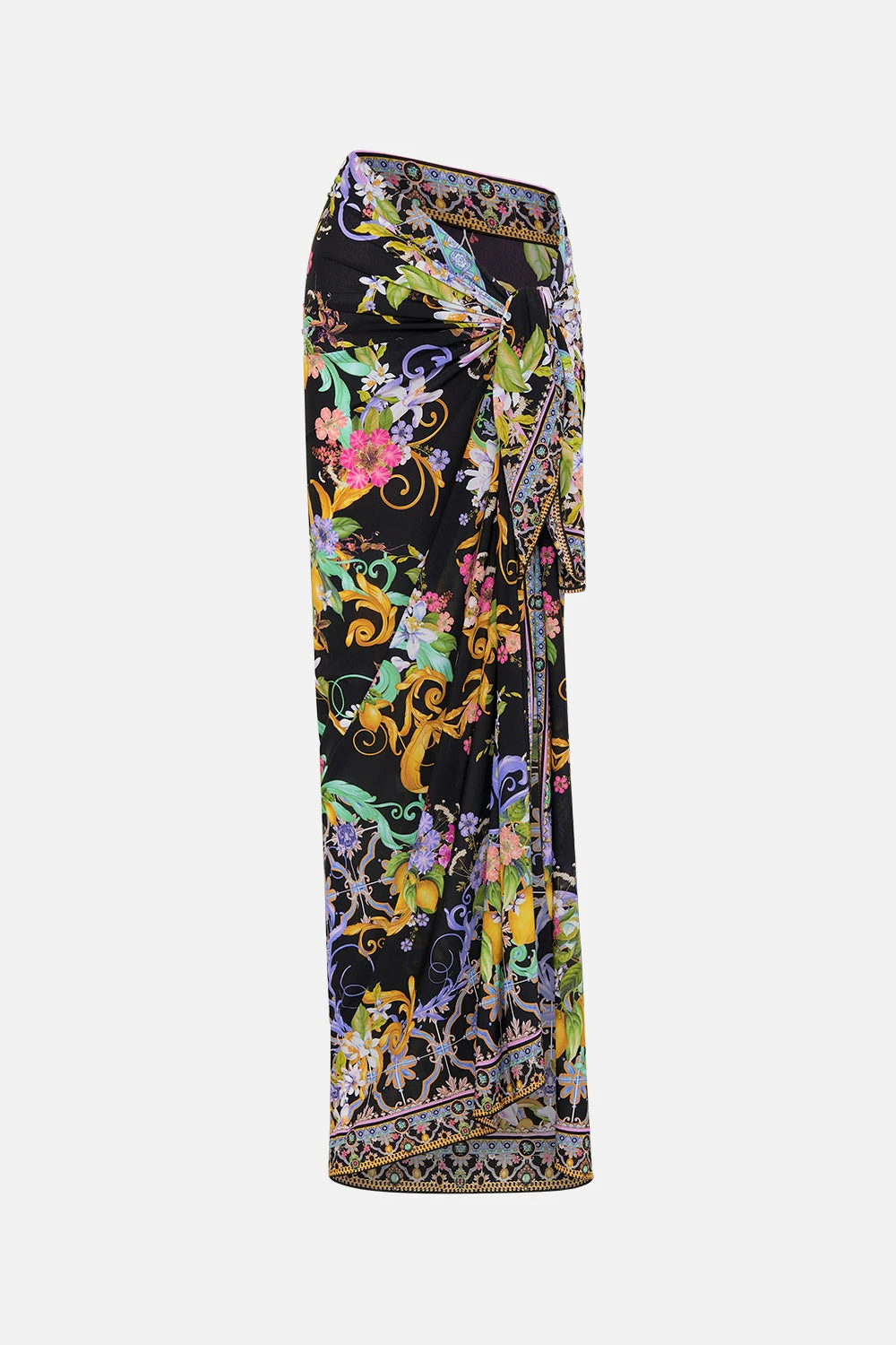 The Meet Me In Marchesa Long Sarong is an immersion of intricate tile mosaics laced with luscious lemons and bright summer florals synonymous symbols of the beautiful Amalfi region. Sporting a multi-wear design that takes you from beachside bliss to enchanted evenings under the moonlight, this luxury sarong wrap is home to a generous length, tie-up fastening and a contrast panel trim. For ultimate resortwear styling wear with the Meet Me In Marchesa Plunge Neck Halter One Piece. Lovingly crafted, designed in Australia. Explore more from Amore Mio collection.