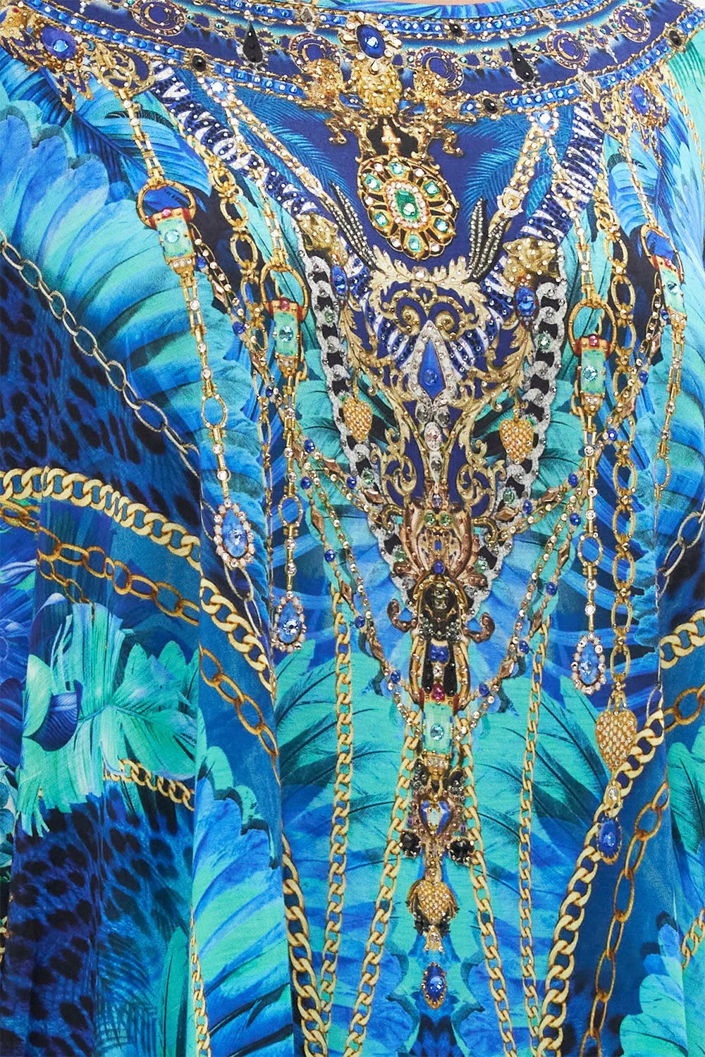 The Song of the Jungle Loose Fit Tee explores an immersion of sharp geometric pattern overlaid a lusciously dark background. Adorning hand-embellished CAMILLA crystals, this luxury tee plays host to cropped soft sleeves, a relaxed silhouette, a shaped high-low hemline and a rounded neckline. Lovingly crafted and designed in Australia, explore more from The Moral Of The Story: Act II collection.