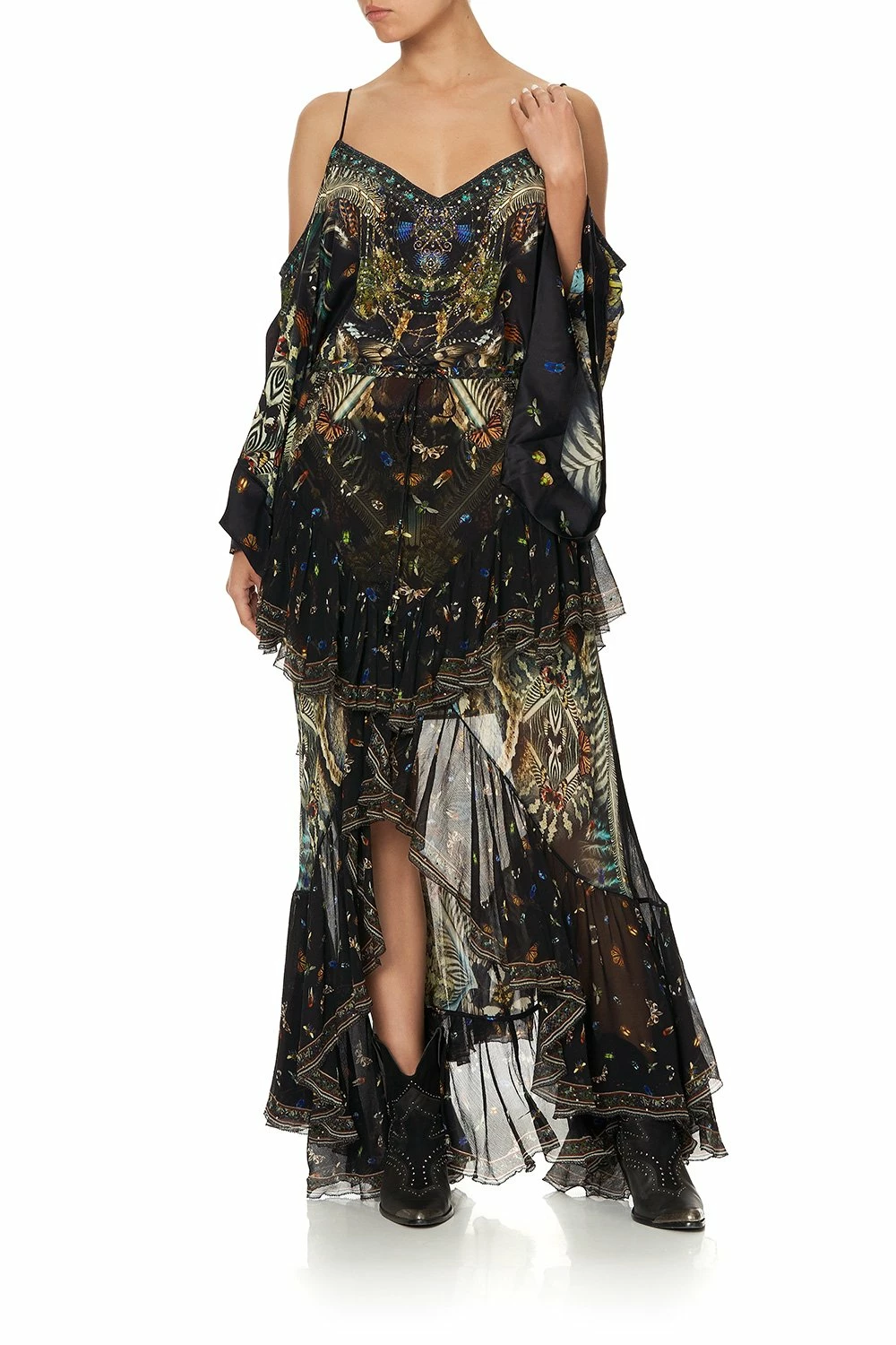 With a canvas of Queensland’s Mother Nature unravelling side by side with artisan detail, our Maternal Instinct Maxi Skirt with Double Frill is an ethereal masterpiece. Tumbling silk tiers and an elasticated back waist with adjustable ties make for a flattering fit, while hand-applied CAMILLA crystalling offers a layer of luxe. Pair with matching cami for a party look, or with the soft bra for a hypnotic festival vibe.