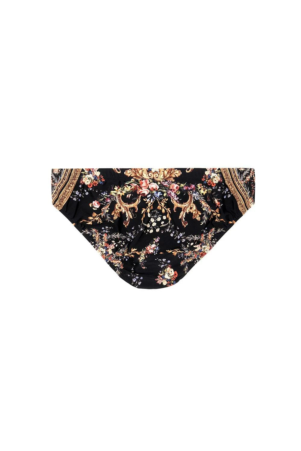 Inspired by the decadent furnishings of Turkish bedrooms and women’s quarters in Versailles, the Friend In Flora Men’s Swim Brief embraces bold print. These printed men’s swimmers are adorned with a striking all-over print and feature an elasticated waist with drawstring and rubber cord ends, as well as an elasticated leg-line.