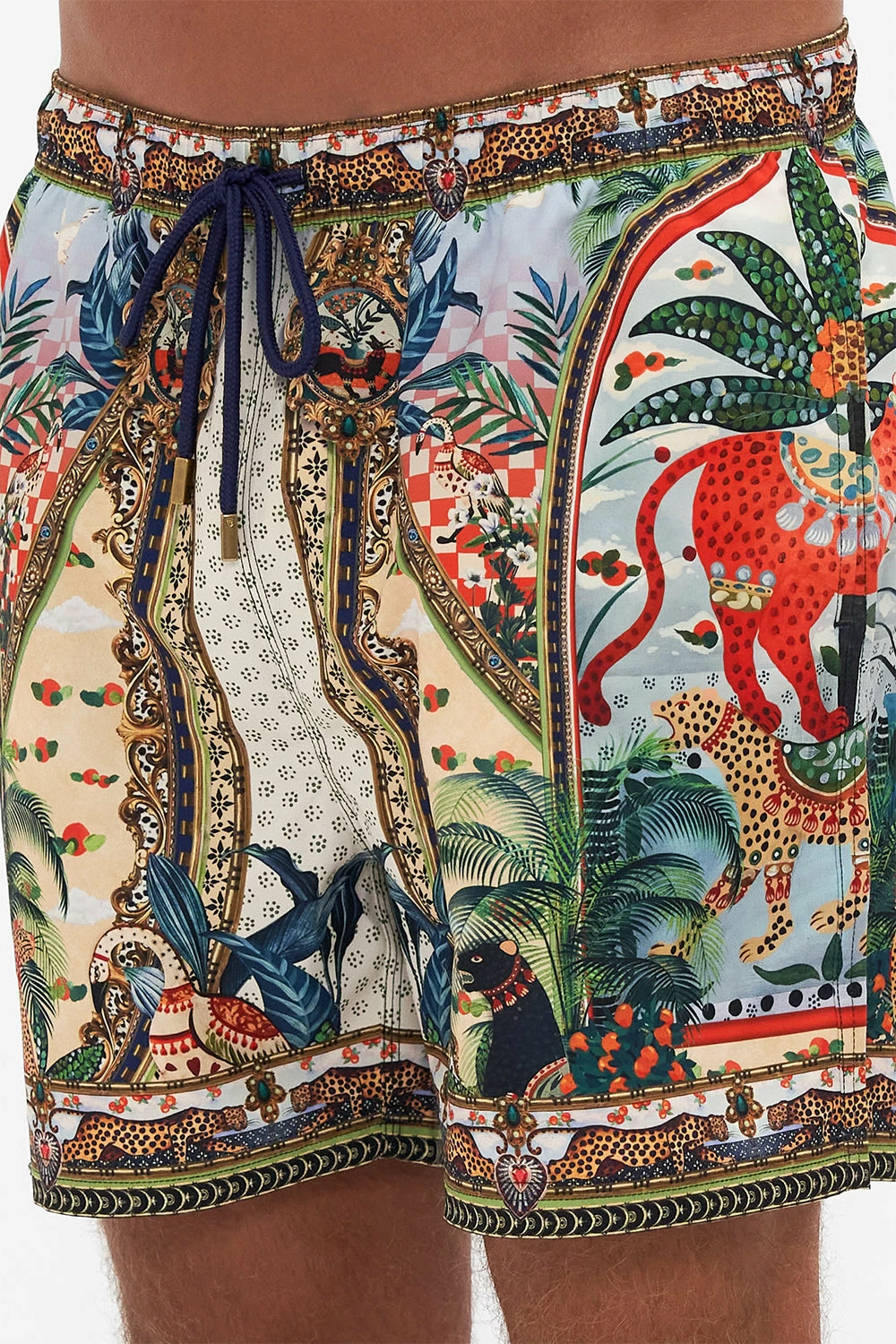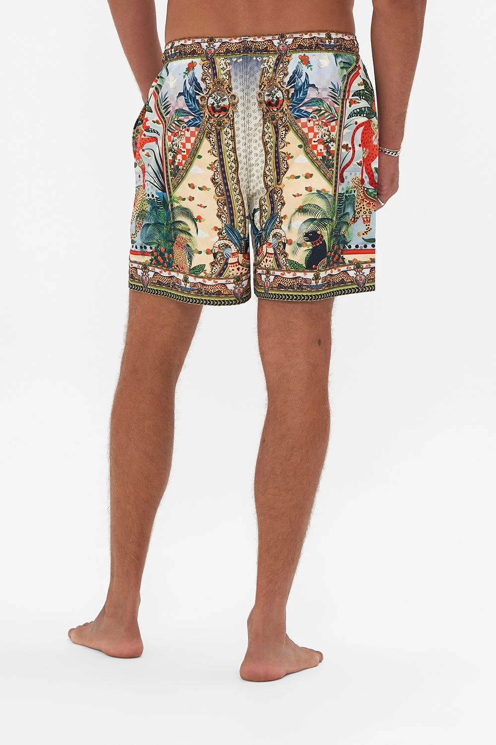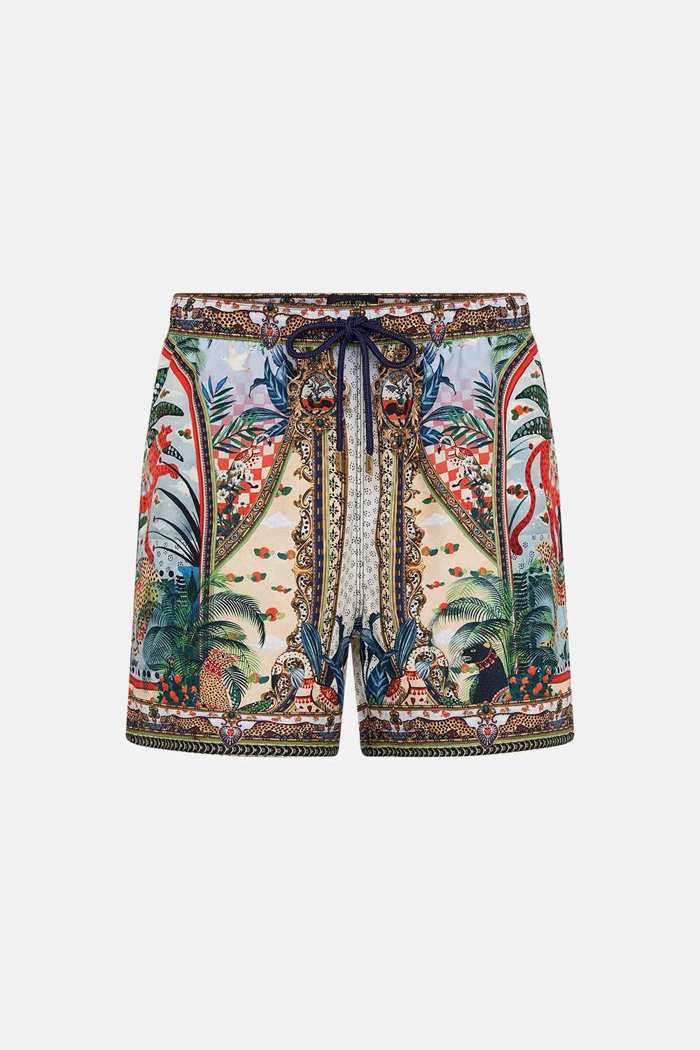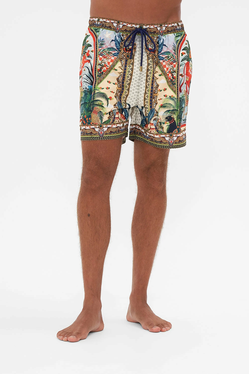 The Alessandro’s Atlantis Mid Length Board Short explores bold depictions of vibrant flora and fauna by artist Alessandro Florio. Artistic love letters to Mother Nature and her wild essence, that become heirloom stories handed down through generations. Crafted from 100% recycled polyester, these luxury men’s swim shorts sport an elasticated drawstring waist, secure zip pocket functionality and a tapered fit that falls into an effortlessly relaxed silhouette. Pair With The Alessandro’s Atlantis Short Sleeve Camp Collared Shirt for bold co-ord styling. Lovingly handcrafted, designed in Australia. Explore more from the Amore Mio collection.