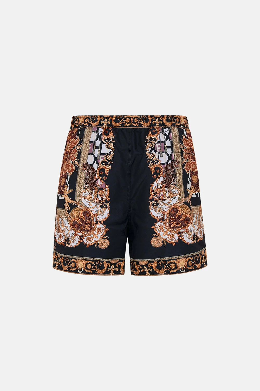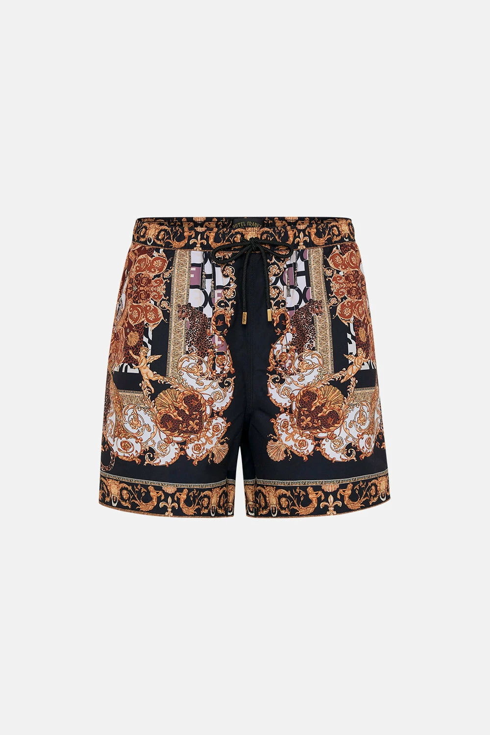 The Feeling Fresco Mid Length Boardshort captures beautiful border details entwined with feline moments reminiscent of vintage scarf motifs. Crafted from recycled polyester retrieved from our seas, this luxury mens printed boardshort sports an elasticated drawstring waist for your most perfect fit, side pockets, secure zip back pocket, and a relaxed mid-length silhouette. Versatile in style from functions swimwear to casually cook worn back with matching Feeling Fresco Mens Knit Sleeve Silk Shirt. Lovingly handcrafted, designed in Australia. Explore more from the Amore Mio collection.