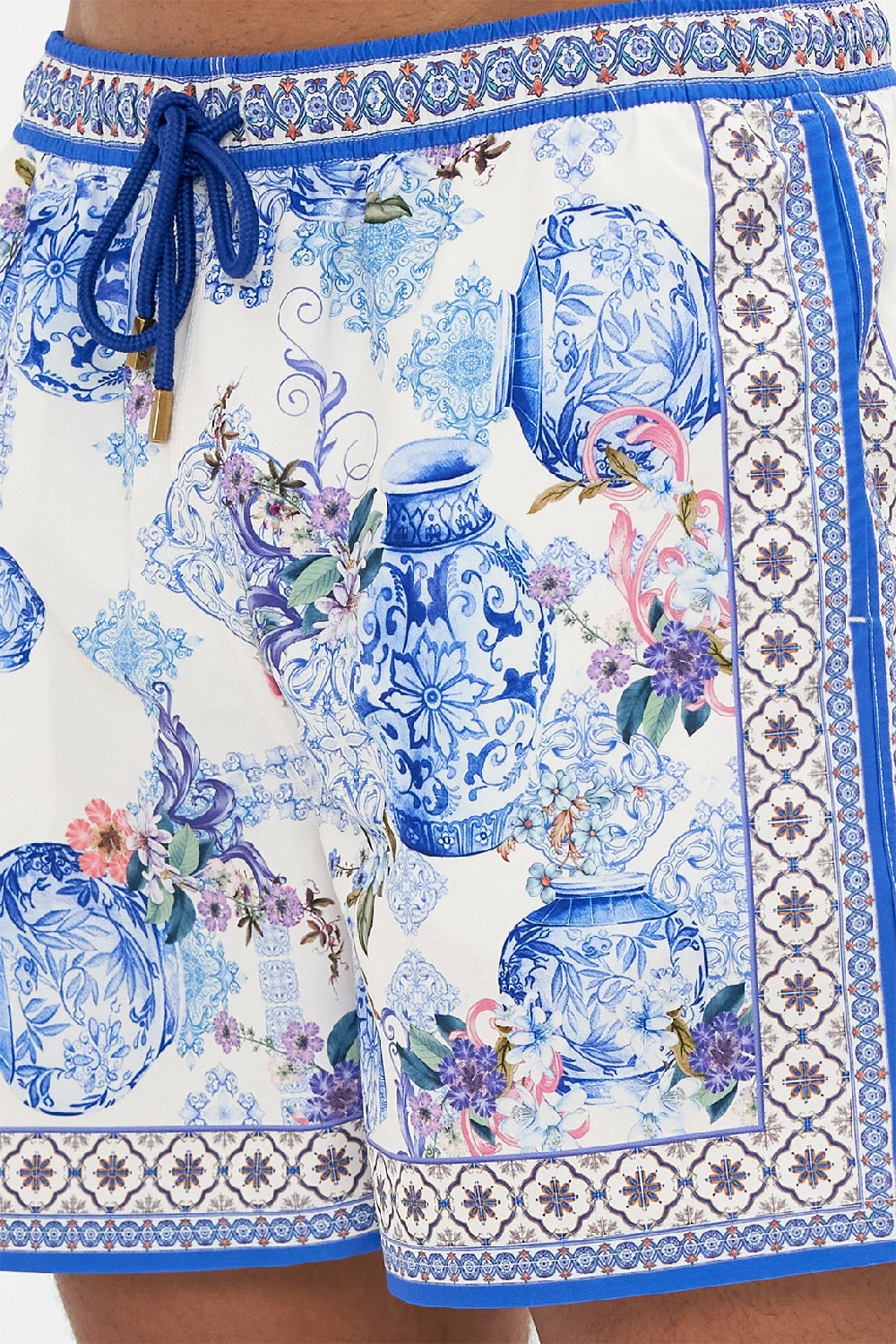 The Paint Me Positano Mid Length Boardshort explores the magical pathways of intricate Italian tile mosaics entwined with delicate pastel florals. Crafted from 100% recycled polyester, these luxury men’s swim shorts sport an elasticated drawstring waist, secure zip pocket functionality and a tapered fit that falls into an effortlessly relaxed silhouette. Pair with the Paint Me Positano Collared Long Sleeve Shirt as a printed matching set. Lovingly handcrafted, designed in Australia. Explore more from the Amore Mio collection.