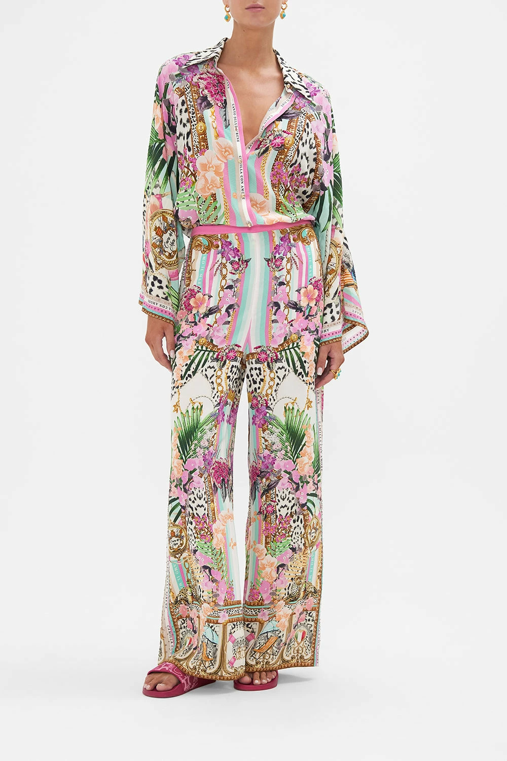 The Dear Amore Mio Minimal Wide Leg Pant depicts a world of lush foliage and feline motifs dancing amongst golden archways. This statement CAMILLA printed pant plays host to fine waistband to add cinching definition, side seam pockets and an ankle-grazing wide leg creating graceful flow and movement in every step. Wear with the Dear Amore Mio Wide Sleeve Blouse as a luxe printed matching set. Lovingly handcrafted, designed in Australia. Explore more from the Amore Mio collection.