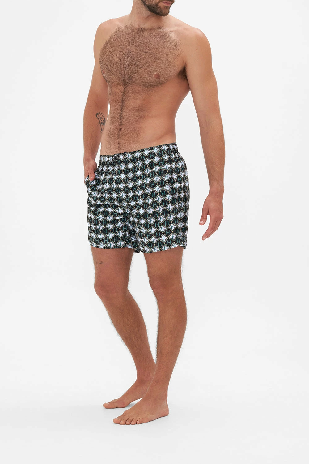 The Jealousy & Jewels Tailored Swim Short commands a rhapsody of geometric mosaics highlighted against a rich jet black setting. Crafted from recycled polyester retrieved from our seas, this luxury swim short sports an elasticated drawstring waist for your most perfect fit, a relaxed short silhouette and a mesh interior for added lining. Lovingly handcrafted, designed in Australia, explore more from The Moral Of The Story: Act II collection.