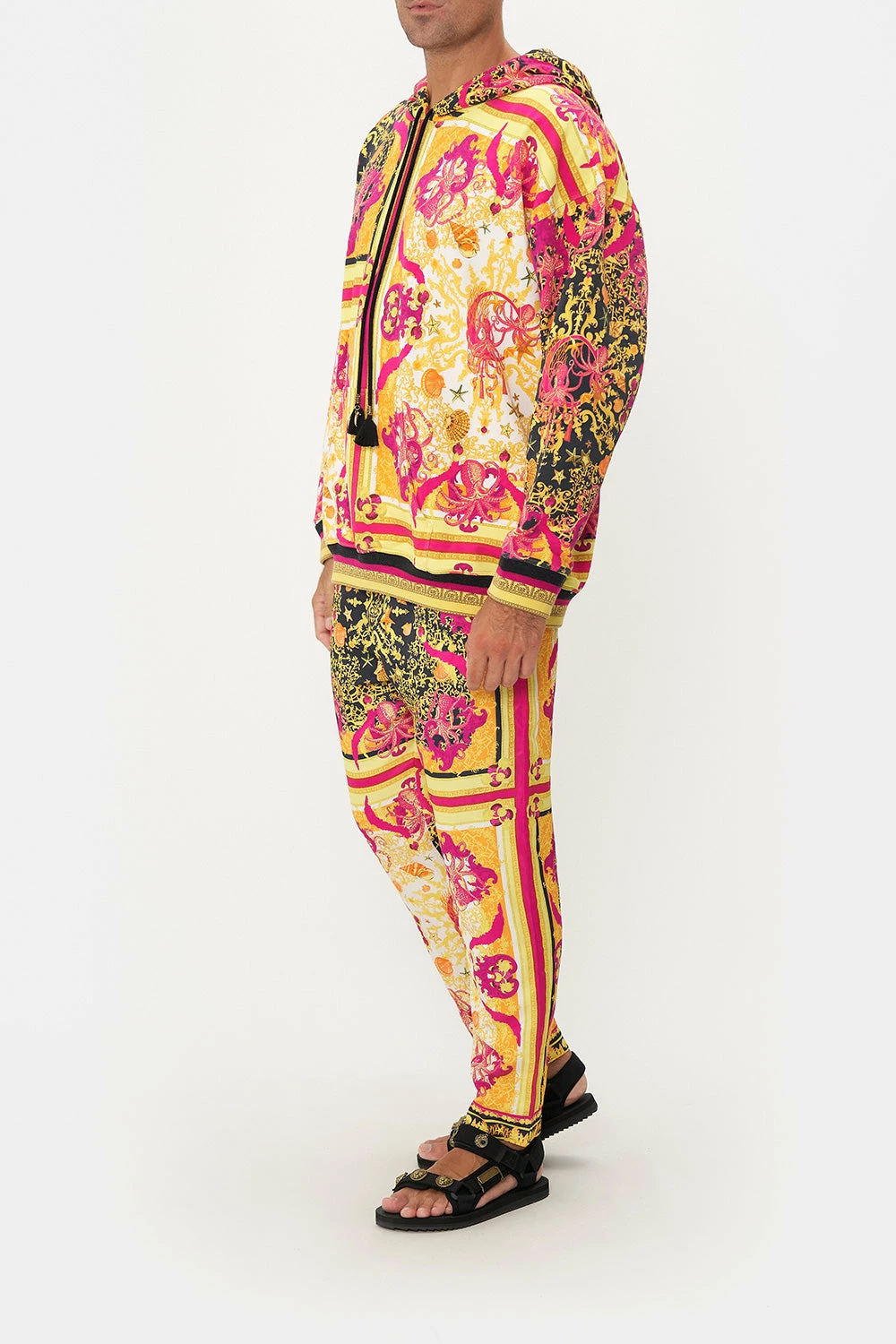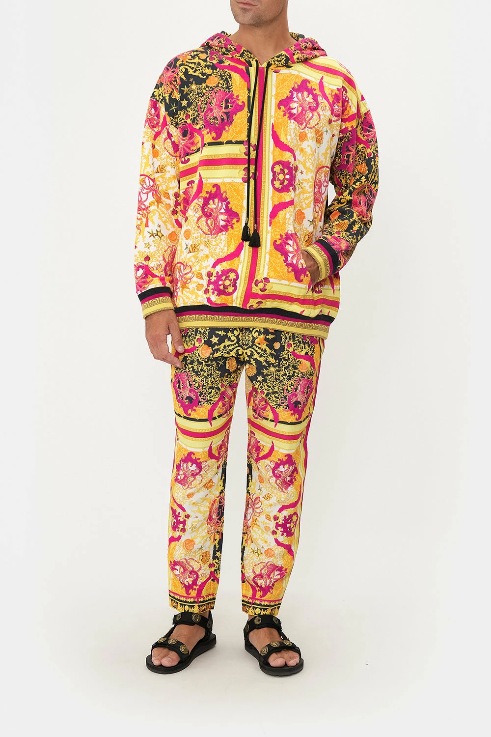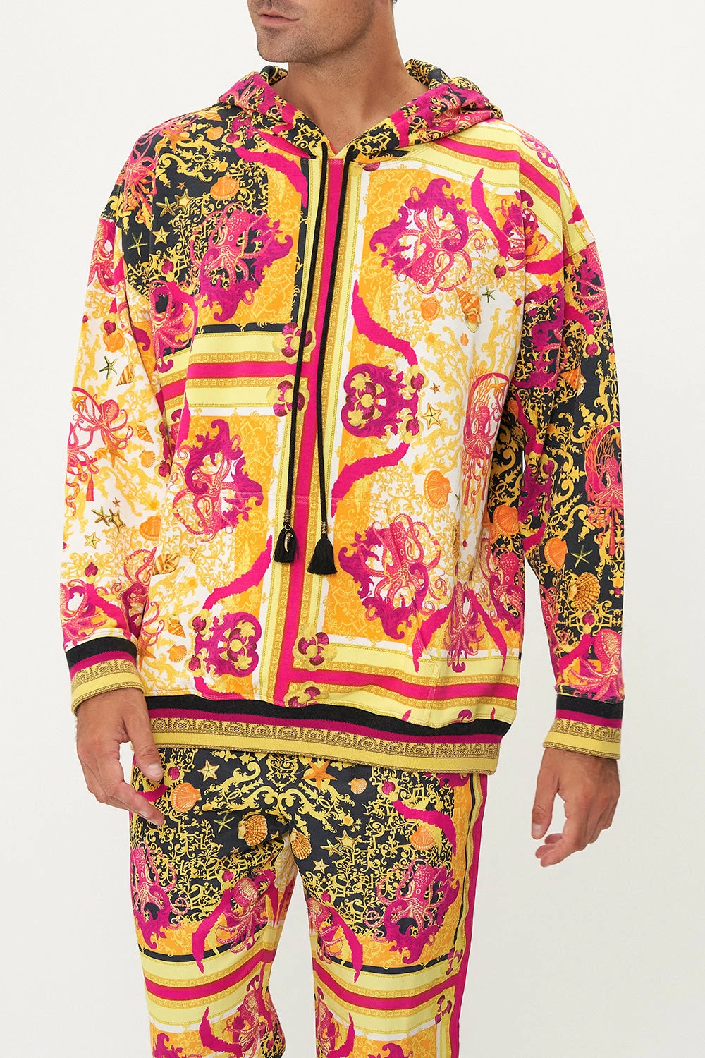 Rococo accents blending upon life beneath the sea, the Octopia Oversized Relaxed Fit Hoodie is encased with a rich midnight hue defined by gold baroque cascades, vibrant octopus wrapped in neon-dipped fuchsias and ornaments of the sea glittering amongst it all. Crafted from breathable CAMILLA cotton, this luxury hoodie features a contrasting pattern cuff and hem, front pocket detailing and a relaxed, oversized silhouette finished off with metallic hardware.