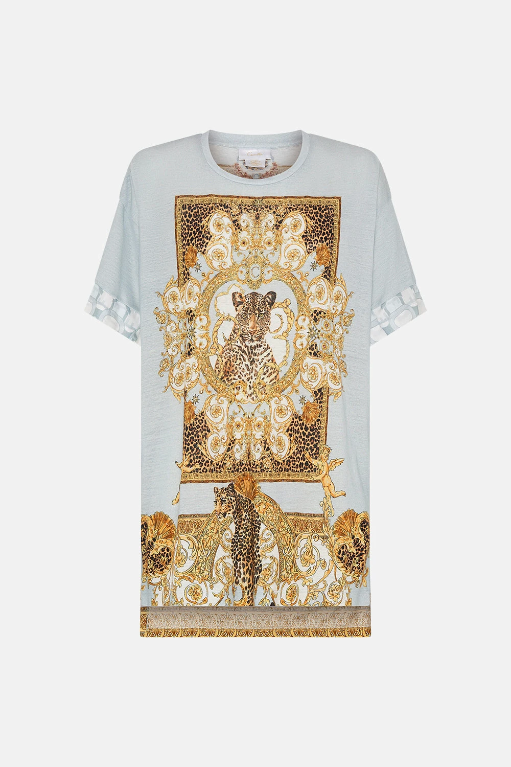 The Palazzo Pride Panelled Side Split Tee delves into a realm of leopards resting regally amongst luxuriously palatial golden flourishes. Adorning CAMILLA crystals, this luxury knit top features a relaxed longline silhouette, a chic round neckline, statement batwing sleeves and a high-low hemline. For elevated everyday wear pair with the Palazzo Pride Leggings. Lovingly handcrafted, designed in Australia. Explore more from the Amore Mio collection.