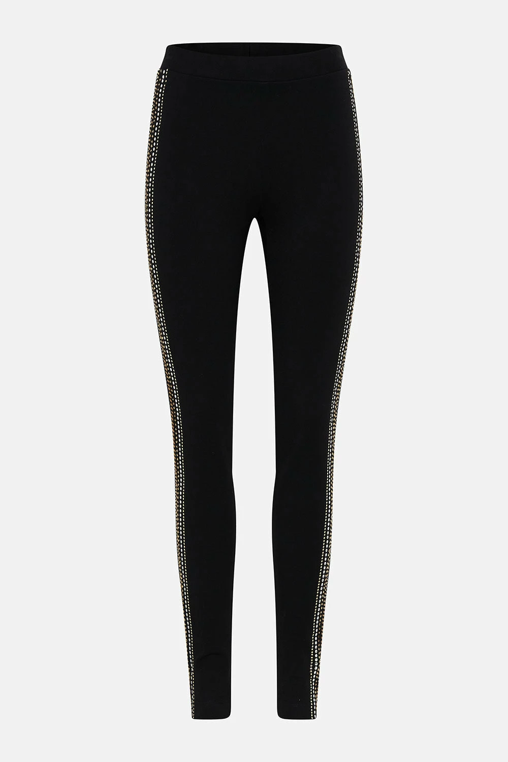 Luxe loungewear reimagined with the elevation of embellishment, the Dance With Duende Ponte Leggings explores a world of deep midnight hues adorned with metallic stud detailing in hues of silver and gold. A winter essential, these luxury ponte leggings feature an ever-so-comfortable elasticated waistline, a fitted silhouette and a full-length cut that dances at the ankle.