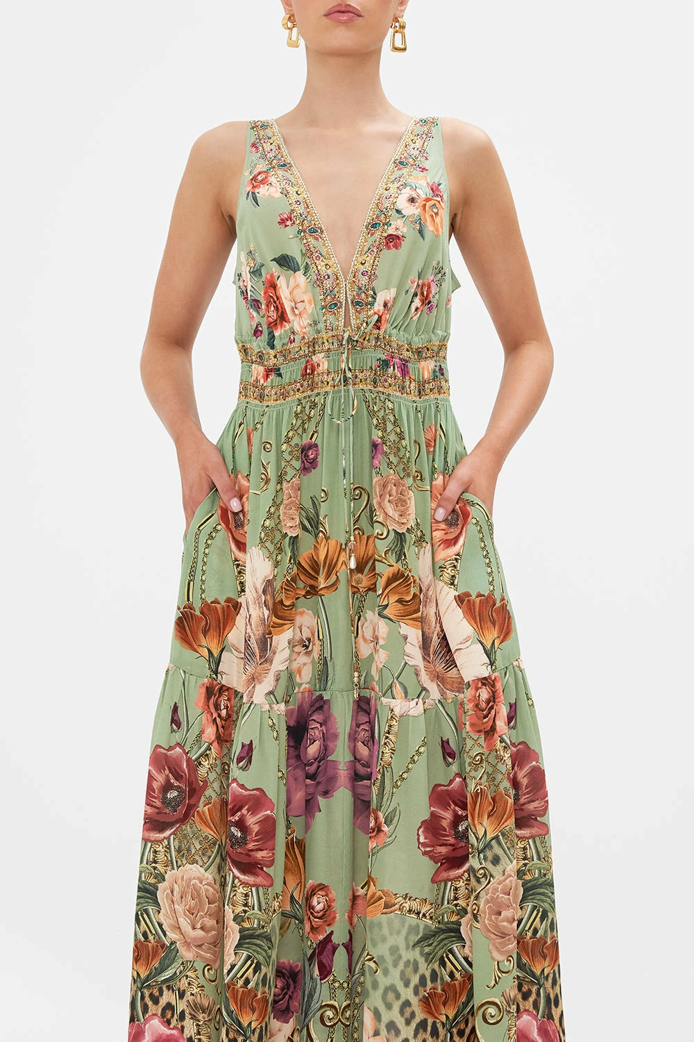 SHIRRED WAIST DETAIL LONG DRESS GROW AND GLOW