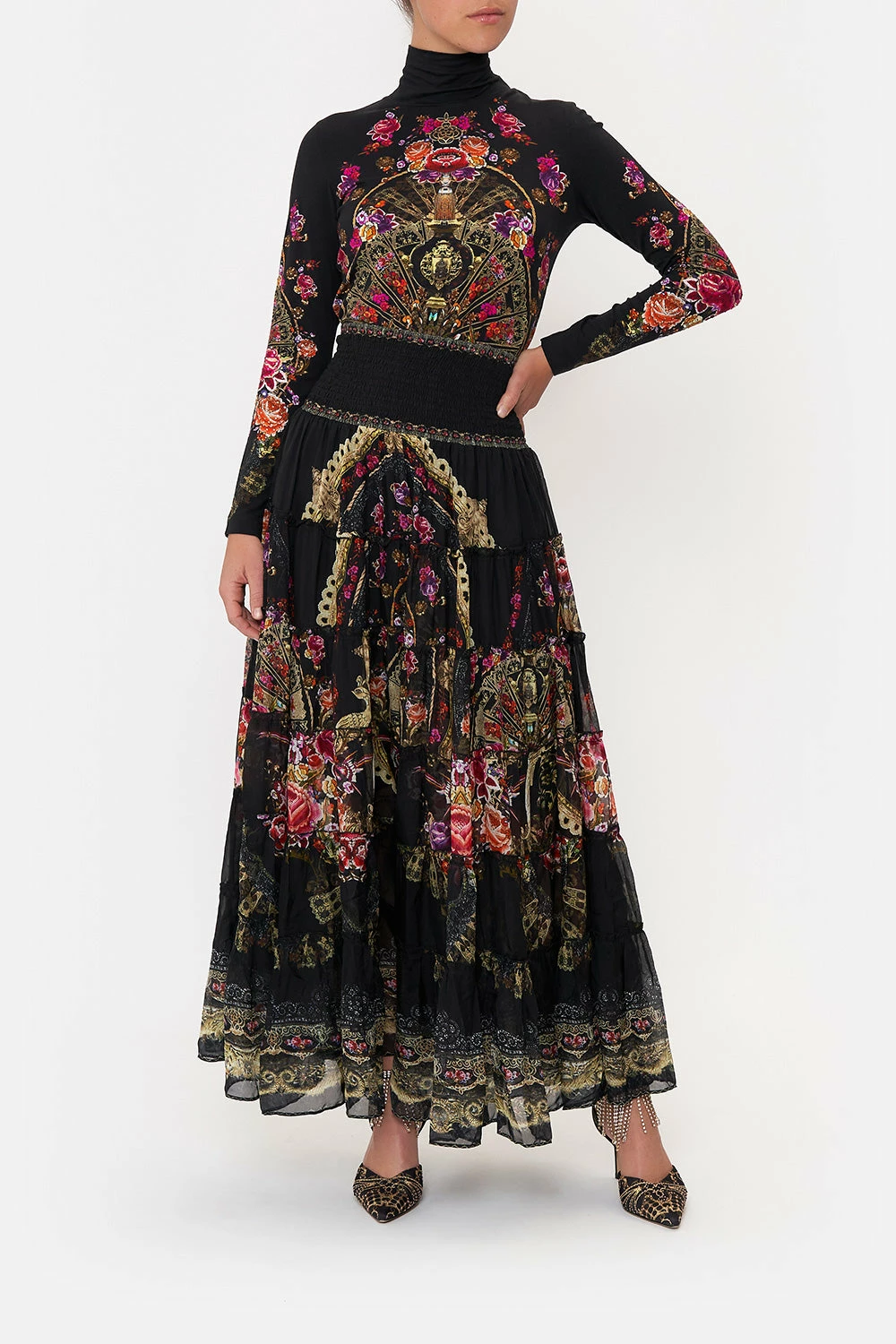SHIRRED WAIST TIERED CIRCLE SKIRT DANCE WITH DUENDE