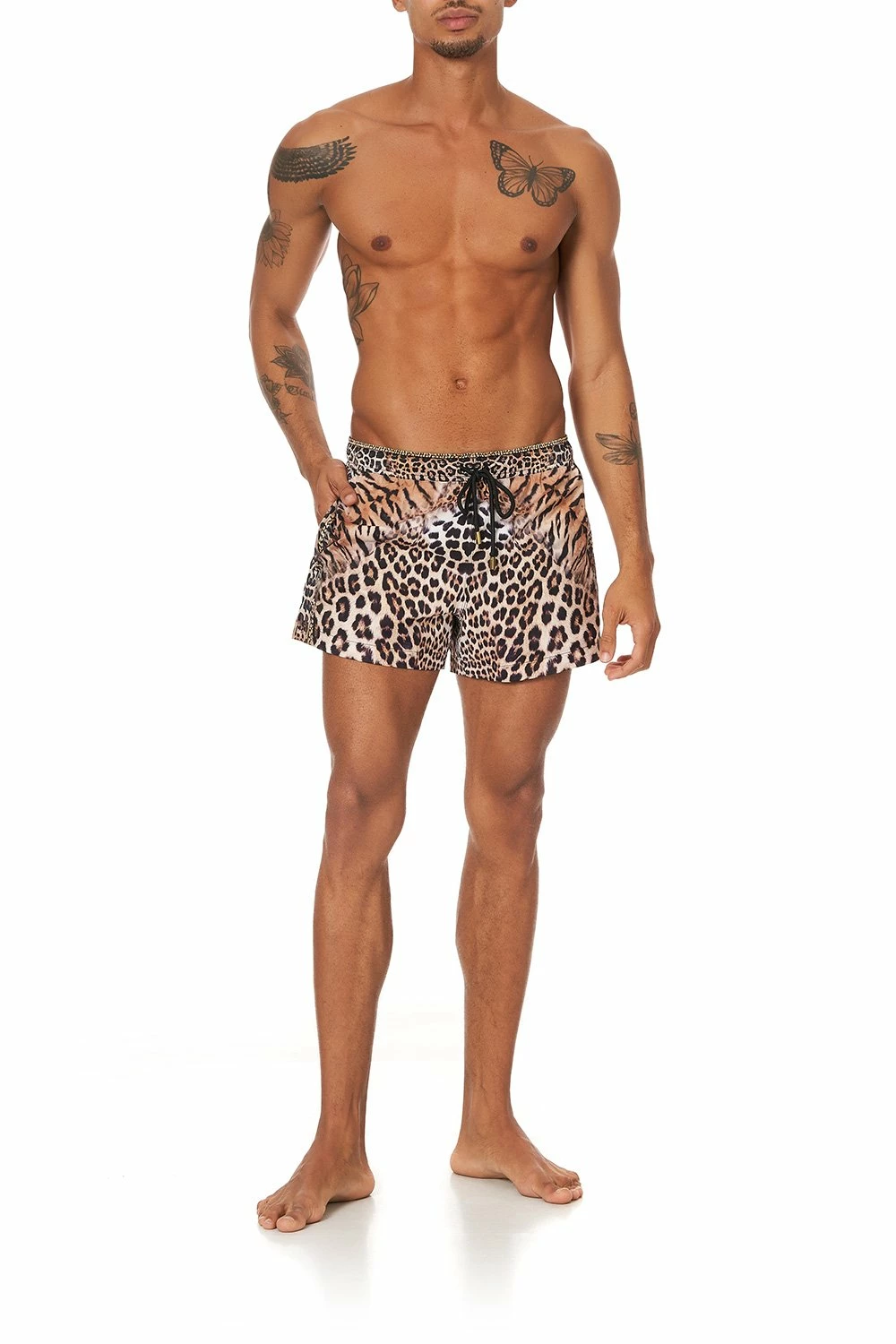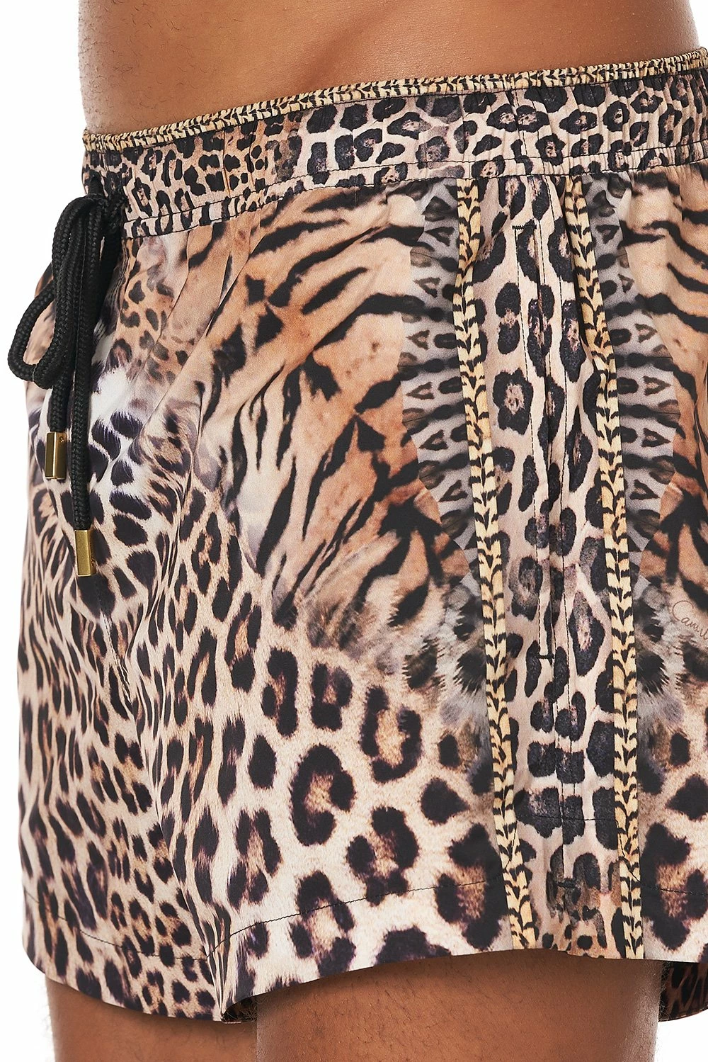 Embody extravagance in the Call Of the Cathedral Short Swim Short, a kaleidoscopic leopard print swim short cut in a short fit with swim safe fabric, perfect for the poolside. This animal printed CAMILLA swim short calls for comfort with an elastic waist and mesh inside, also flaunting side splits. Pair with the matching Short Sleeve Camp Collared Shirt for a statement summer look.