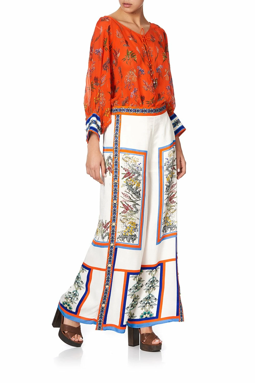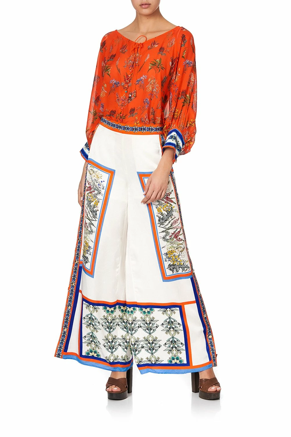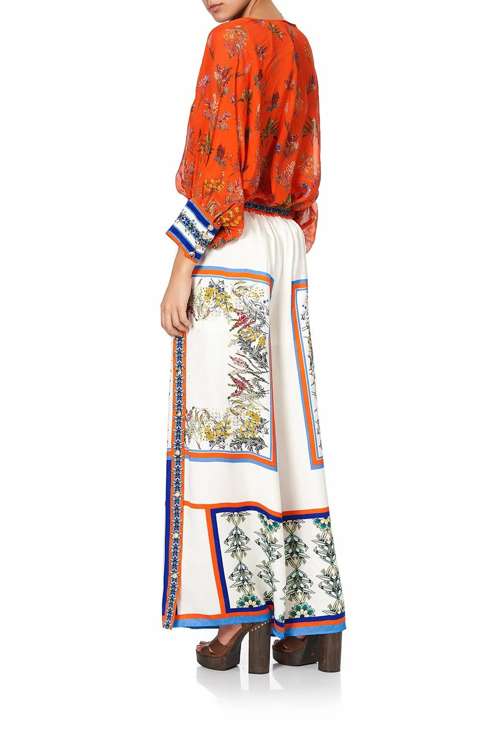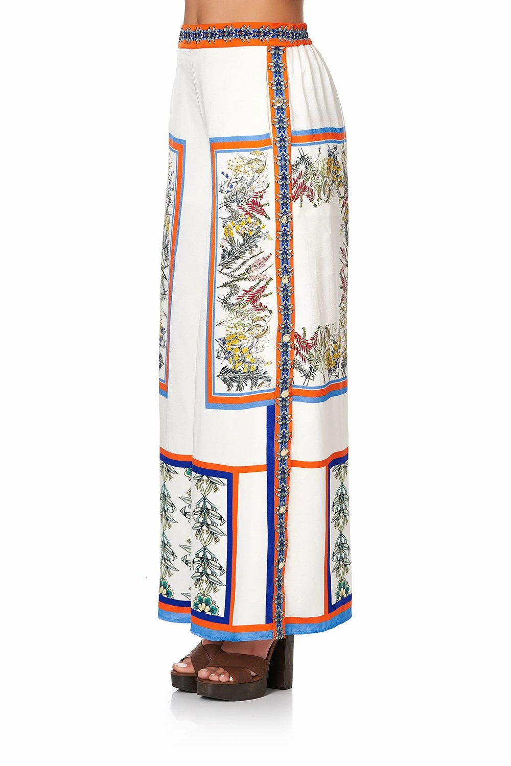 In the spirit of retro beach shacks, the Gone Coast Side Button Up Pant pays tribute to the calming influence of the coastline. These opulent silk trousers feature button through side panels, a comfortable elasticated back waist, digitally printed silk, as well as hand-placed crystals as detail.
