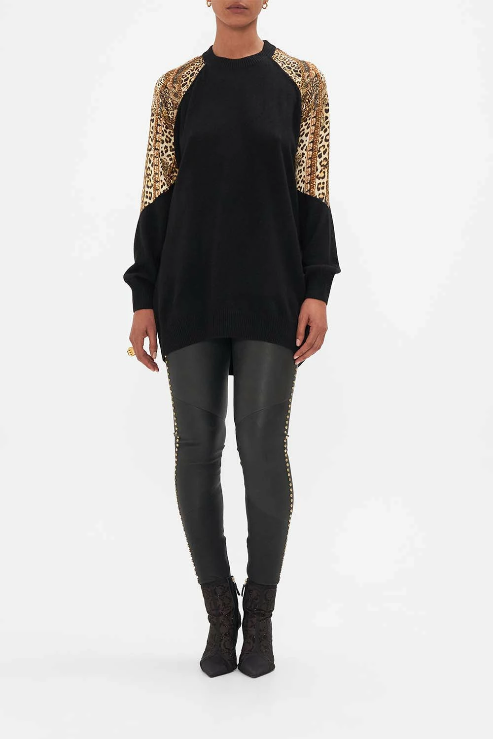 The Standing Ovation Silk Spliced Shoulder Jumper captures the unbridle inspirational spirit of the infamous Teatro alla Scala through a rhapsody of rich leopard print. Crafted from sumptuous wool-cashmere blend, this luxury winter jumper features a crew neckline, shimmering crystals, and spliced silk shoulder accents. Pair with the Standing Ovation Jersey Drape Pant With Pocket for luxe lounge styling. Lovingly handcrafted, designed in Australia. Explore more from the Amore Mio collection.