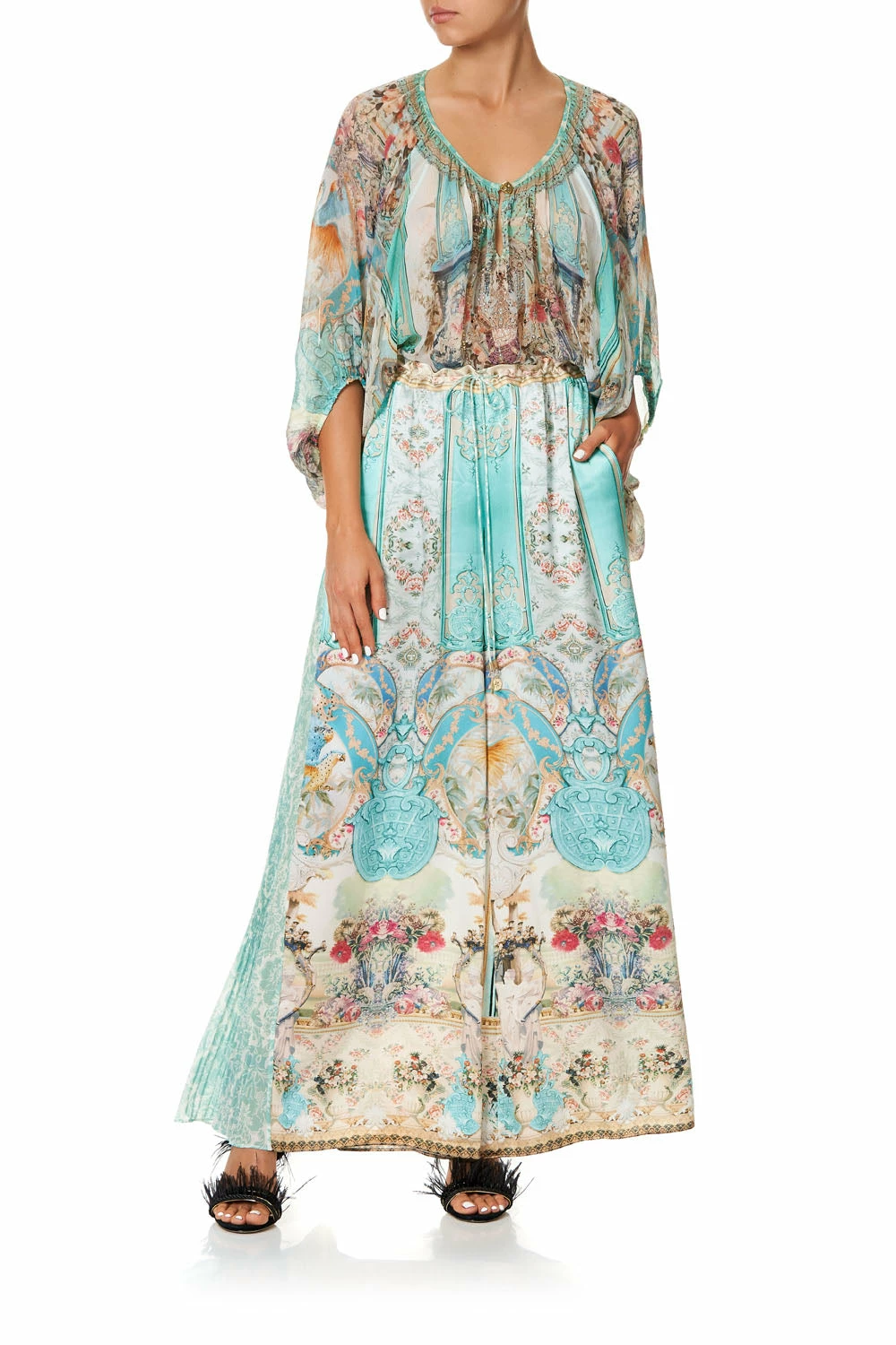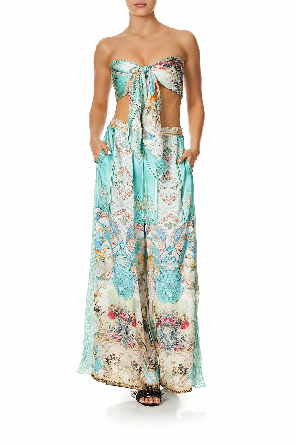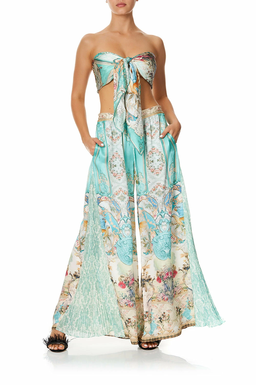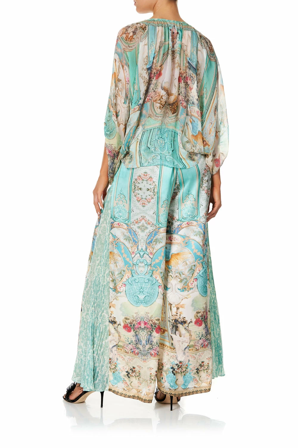 Charmed by the celestial architecture of Paris – the I Dream of Marie Soft Pant with Godets is unashamedly opulent. With delicious peppermint hues, these sumptuous silk trousers feature pleated godets, charming drawcord ties, a flattering elasticated back waist, as well as hand-placed crystals as detail.