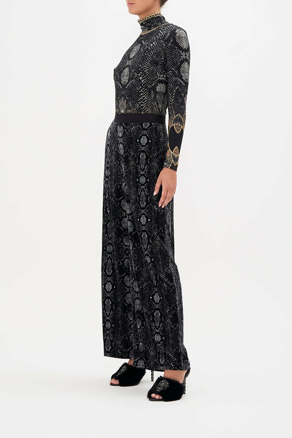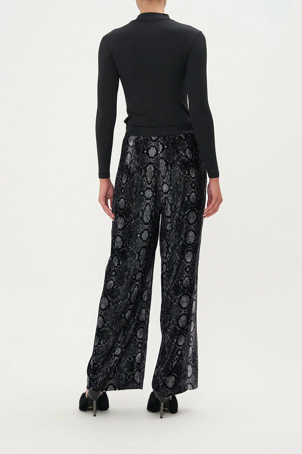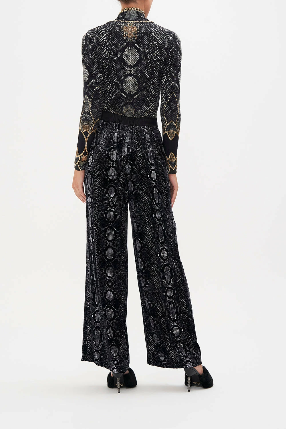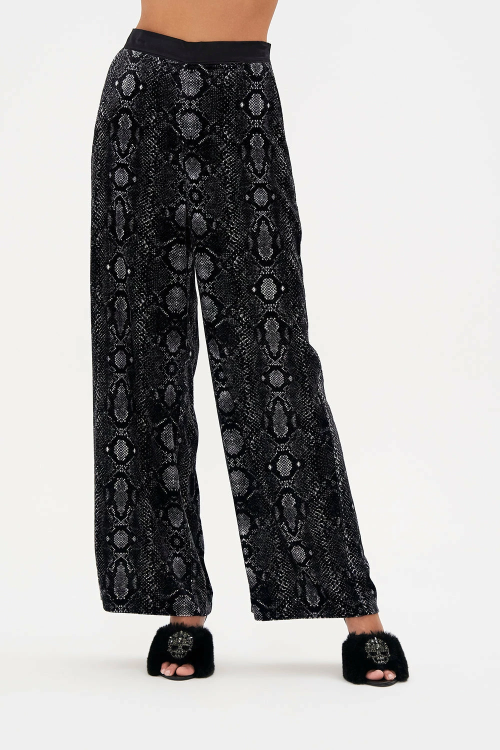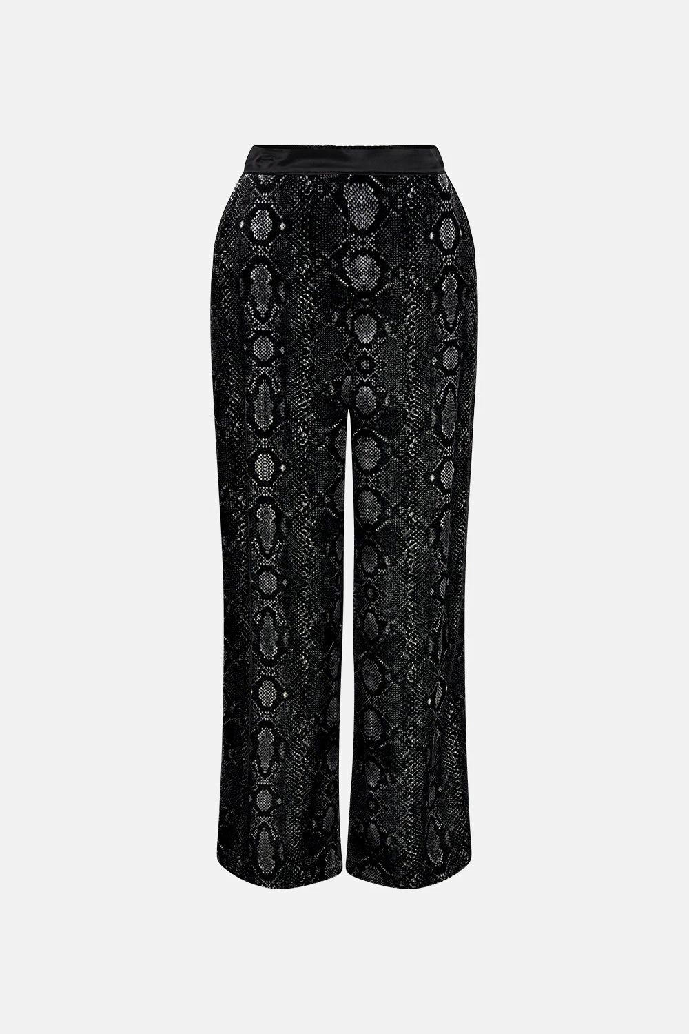 A wild take to transeasonal essentials, the Wild Horses Straight Leg Relaxed Trouser captivates our gaze with a deep shade of midnight adorning soft grey snake print and contrasting shades of midnight. Crafted from a lavish silk blend, these luxury pants play host to a statement straight leg silhouette, pocket functionality, zip fastening and a contrasting elasticated waist for your most perfect fit.