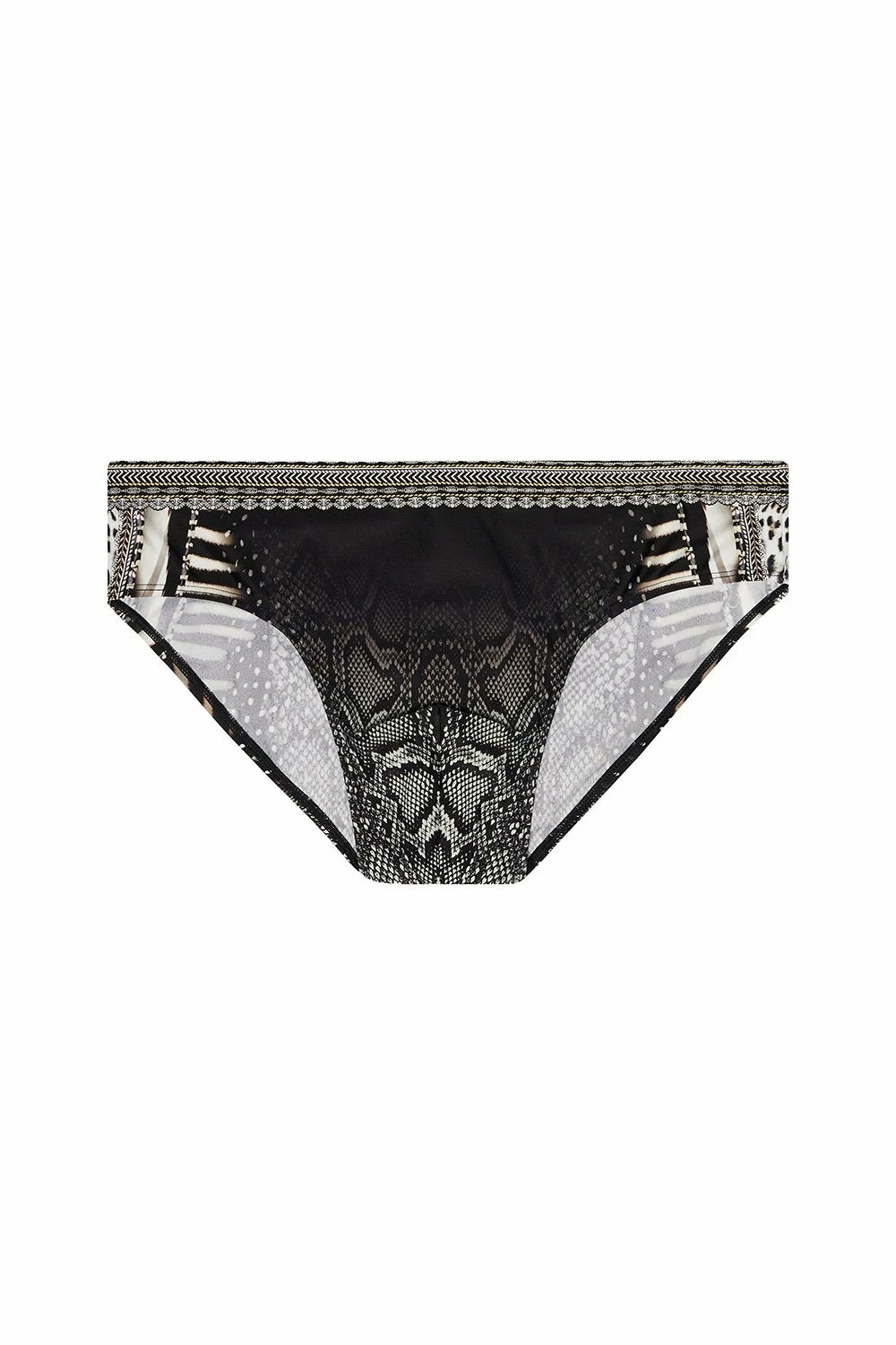 Dip into something cheekier as the sun comes out to play with our Quechua King Swim Brief. Inspired by ancient times and the dawn of the ages, invite shades of midnight and subtle snakeskin to your swimwear as you take on the waves. The silhouette features complete coverage, mid-rise cut, string tapering and mesh lining on the interior. A contrast patterned border wraps its way around the hip to add the final pièce de résistance.