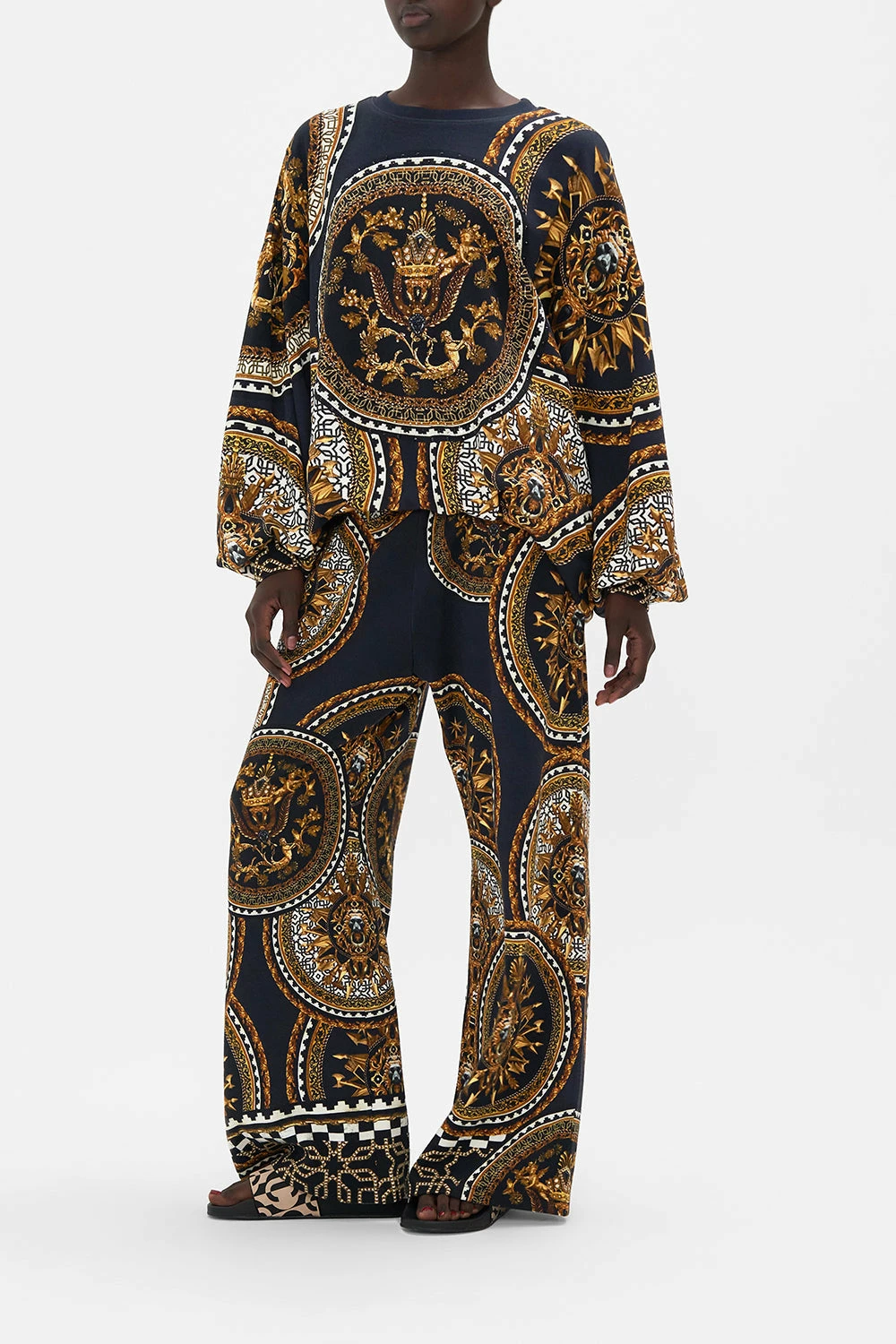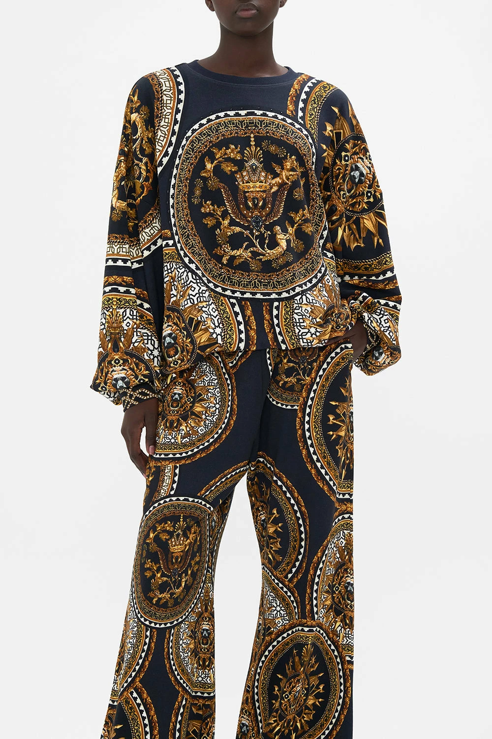 The Duomo Kaleido Tuck Detail Sweater celebrates the baroque details synonymous with the opulence of grand Italian duomos. Complete with CAMILLA crystal embellishments, this luxury knit jumper features soft blouson sleeve that fall into cuff accents, a crew neckline and a relaxed oversized silhouette. Pair with the Duomo Kaleido Straight Leg Track Pant for an effortless loungewear look. Lovingly handcrafted, designed in Australia. Explore more from the Amore Mio collection.