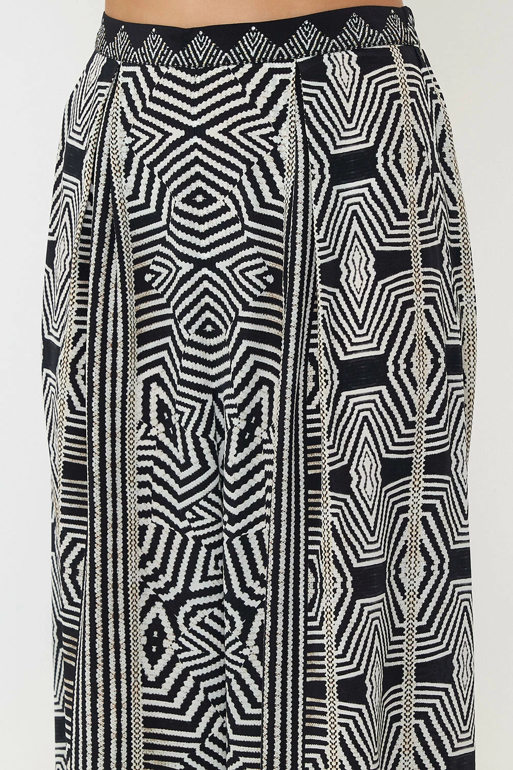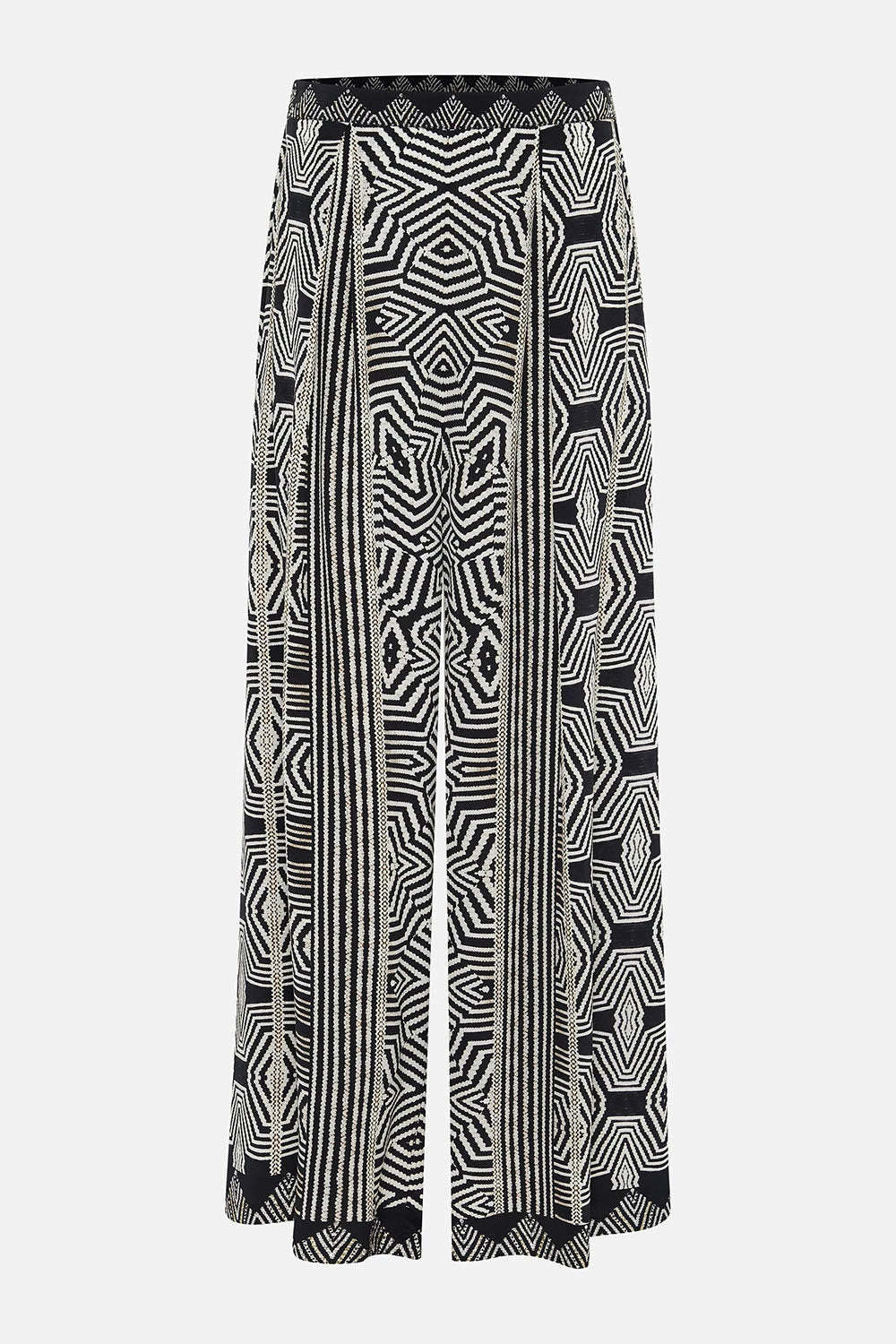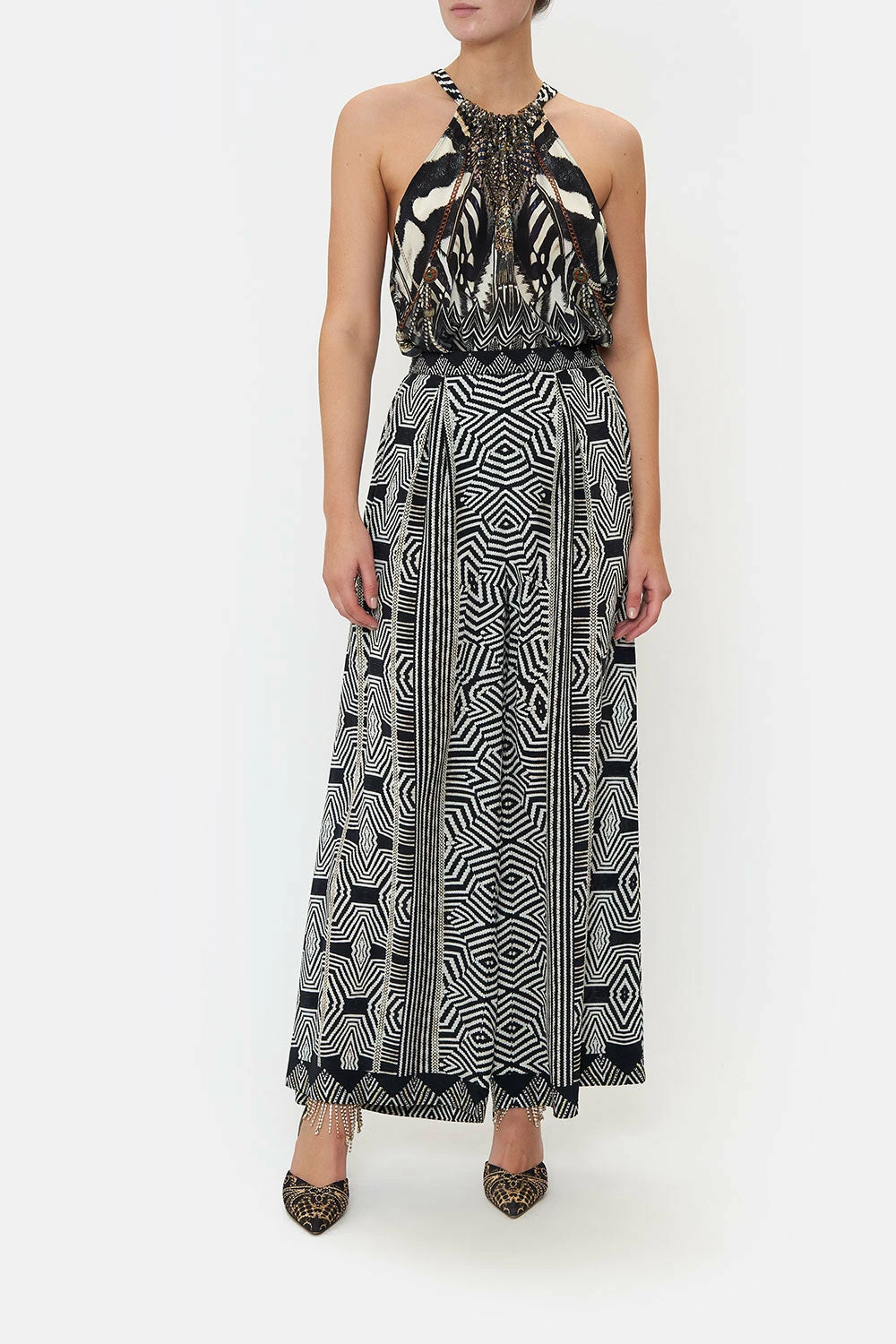 Wild cascades dipped in everyday comforts, the Knight Of The Wild Tuck Front Pant effortlessly melts monochromatic panelling immersed in slated hues and pops of midnight. Crafted from breathable silk, these luxury summer pants feature a contrasting waistband, a wide statement leg, a relaxed full-length silhouette and panel trim.