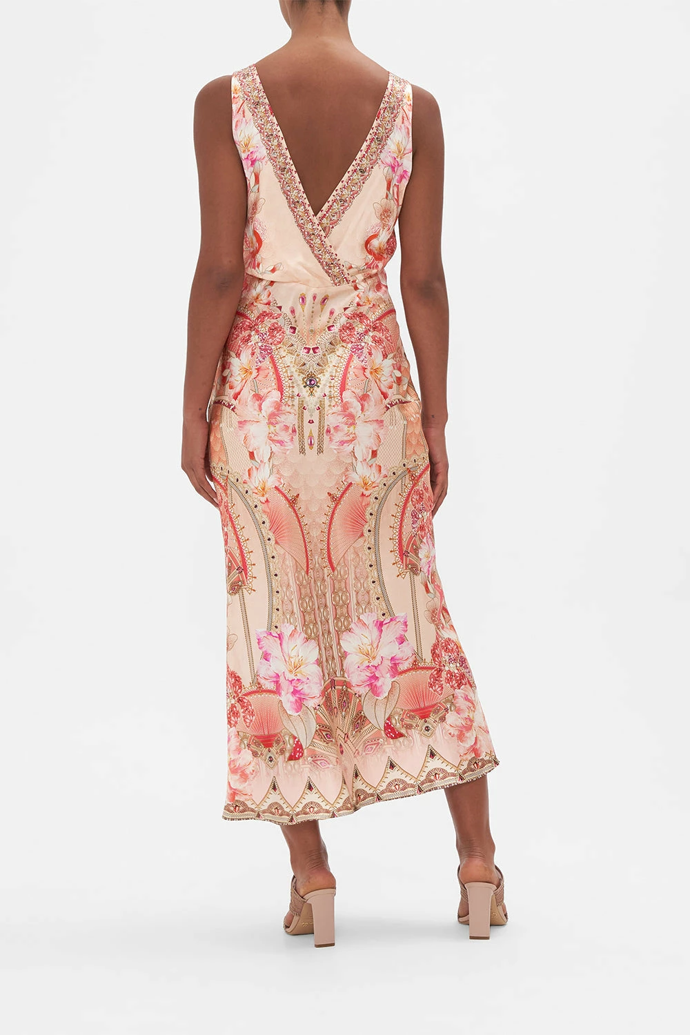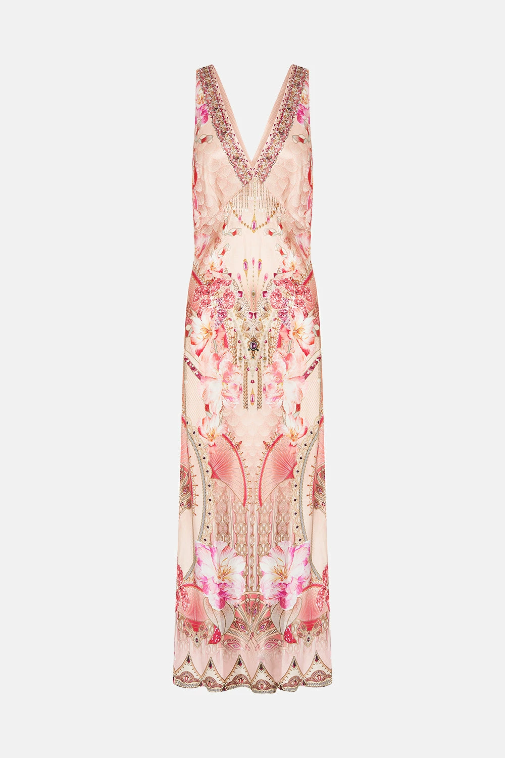 The Adore Me V Neck Slip Dress embodies an arrangement of soft pink blooms set against delicate unfurling fans of pretty pearls and sparkling jewels. Designed for timeless elegance, this luxury silk slip dress plays host to a timeless v neckline adorned in signature CAMILLA hand-embellished crystals, invisible zip fastening for effortless enclosure and a panelled bodice detail for ultimate fit perfection. Lovingly handcrafted and designed in Australia, explore more from The Moral Of The Story: Act II collection.