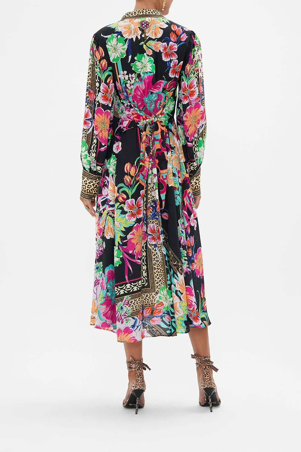 The Printed Primavera Waist Tie Shirt Dress is a playful juxtaposition of bold retro florals set against monogrammed border details. This striking full length luxury silk CAMILLA shirt dress features waist tie detail which can be worn at the front or back, button through enclosure and shirred detail on waist. A stunning day dress in an eternally chic silhouette. Lovingly handcrafted, designed in Australia. Explore more from the Amore Mio collection.