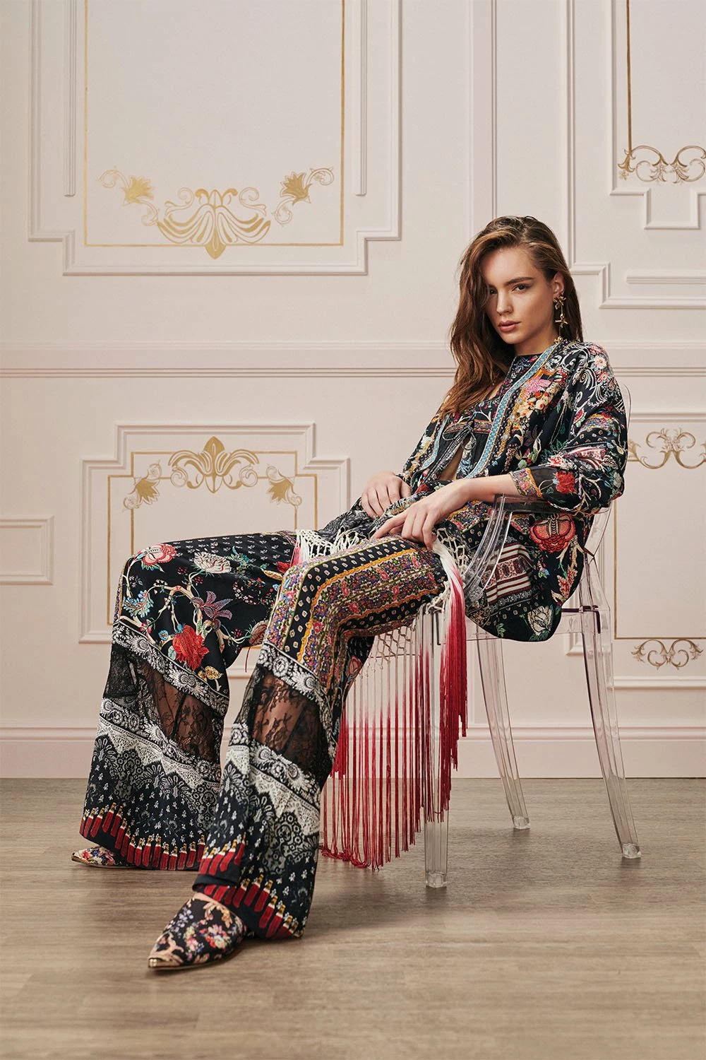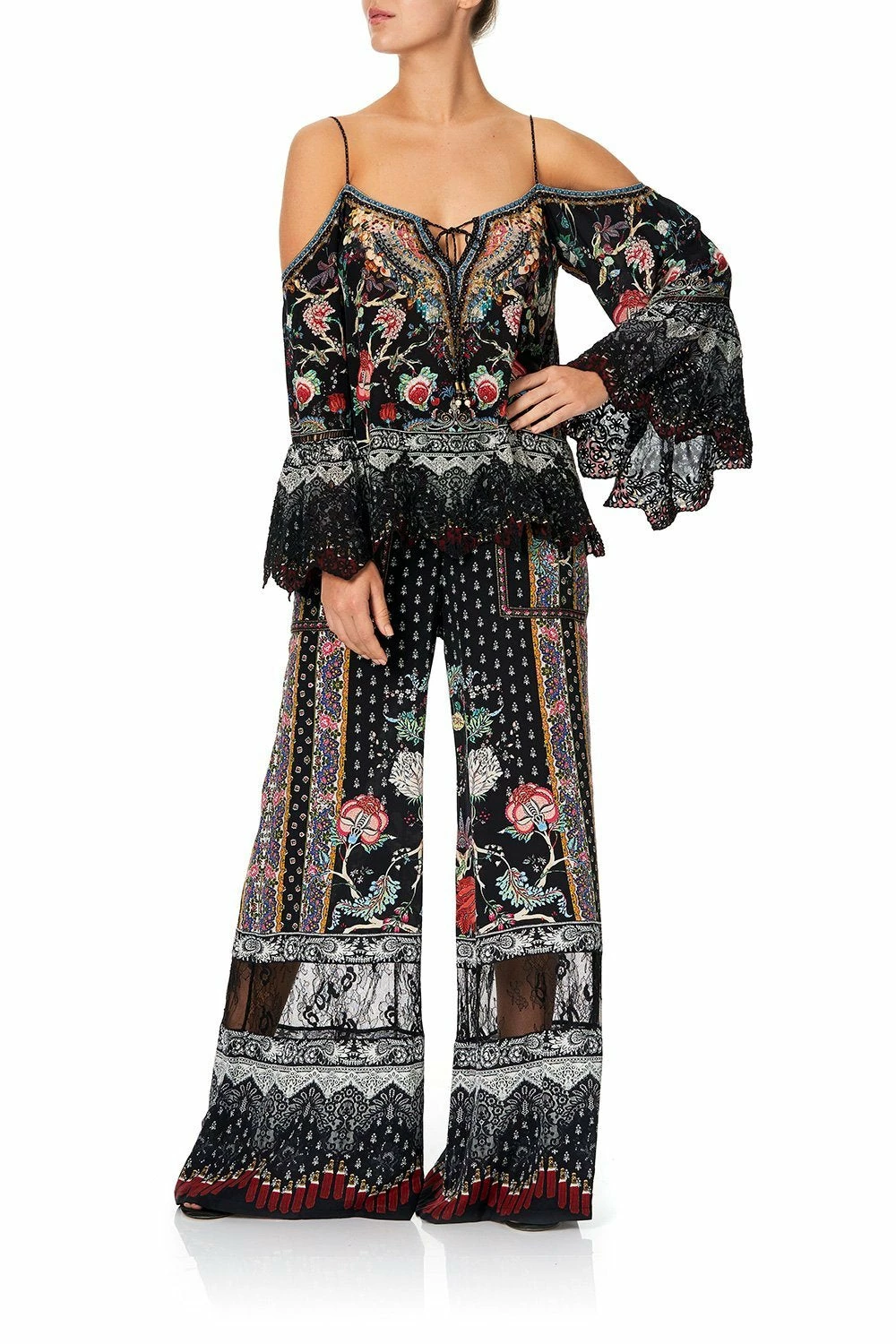 Inspired by the provincial pleasures available to those travelling between Avignon and Saint Tropez – the Haute Provincial Wide Leg Drawstring Waist Pant exudes easy elegance. With floral flourishes, these decadent silk trousers feature an alluring elasticated waist, front patch pockets, ornate all-over print, as well as hand-placed crystals as detail.
