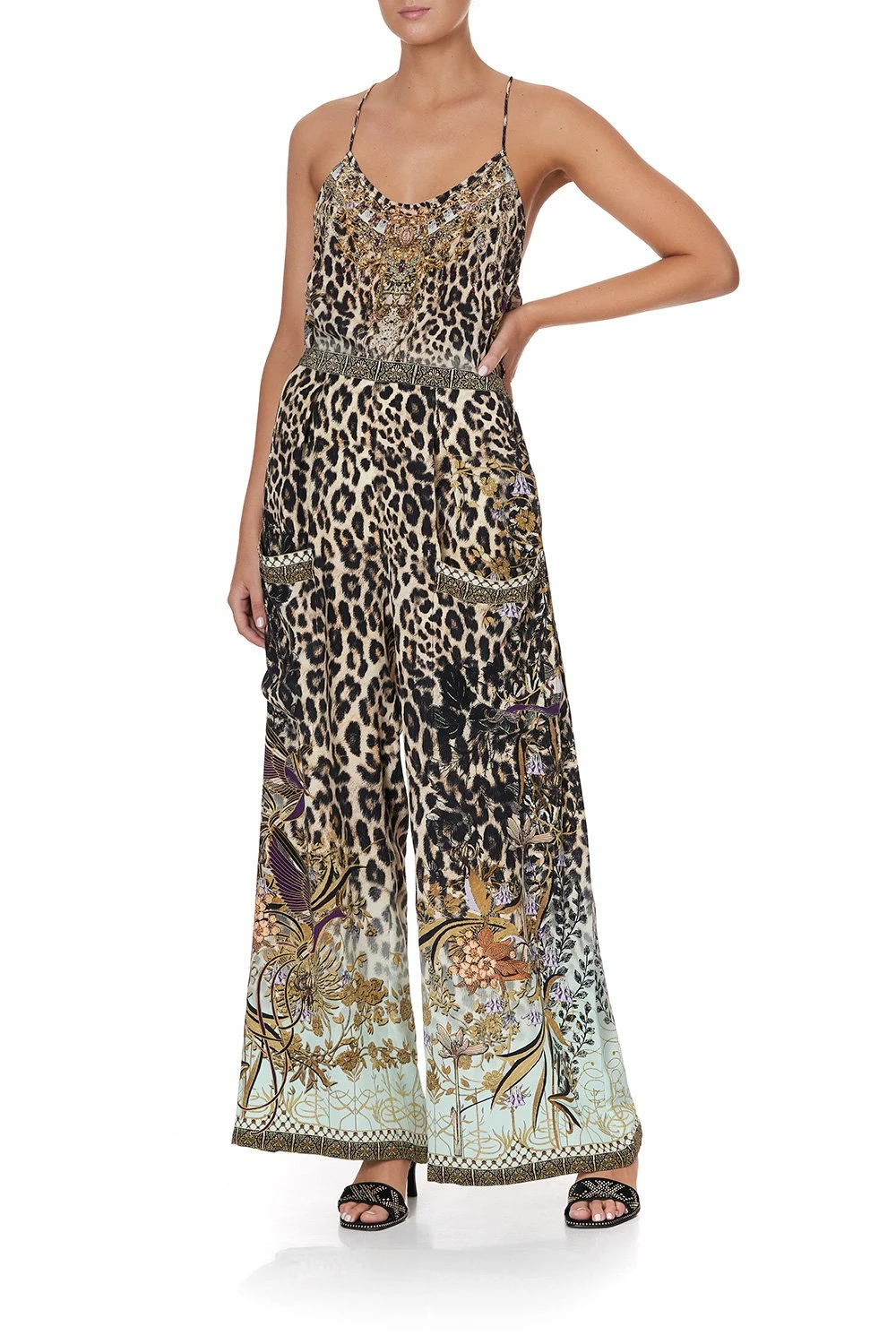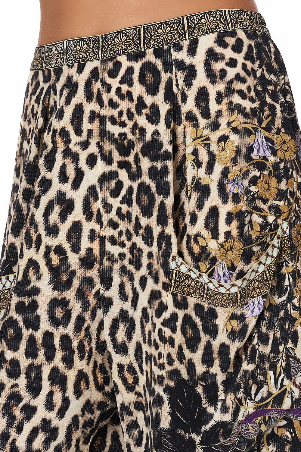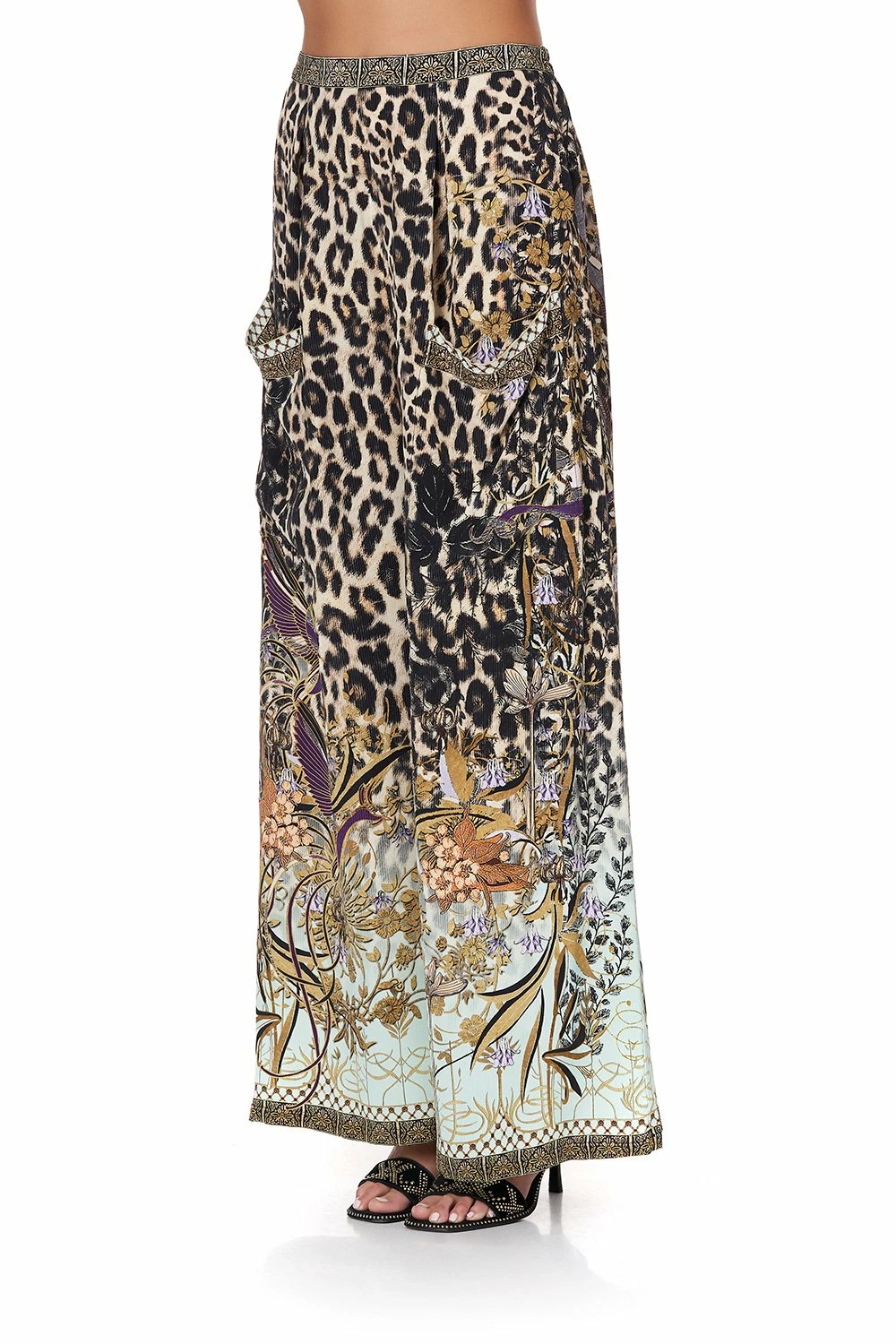Enchanting details and fairytale allure, the Nomadic Nymph Wide Leg Trouser with front Pocket are a perfect free flowing silk trouser crafted in bold leopard print with a hint of mystical gold detail. These statement pants feature a wide leg cut, a figure flattering high waisted elasticated waistband and deep front patch pockets. An opulent palazzo pant style can be paired perfectly Nomadic Nymph Lace Up Ruffle Blouse for an elegant look or with the Nomadic Nymph T Back Shoestring Top for a bohemian chic style.