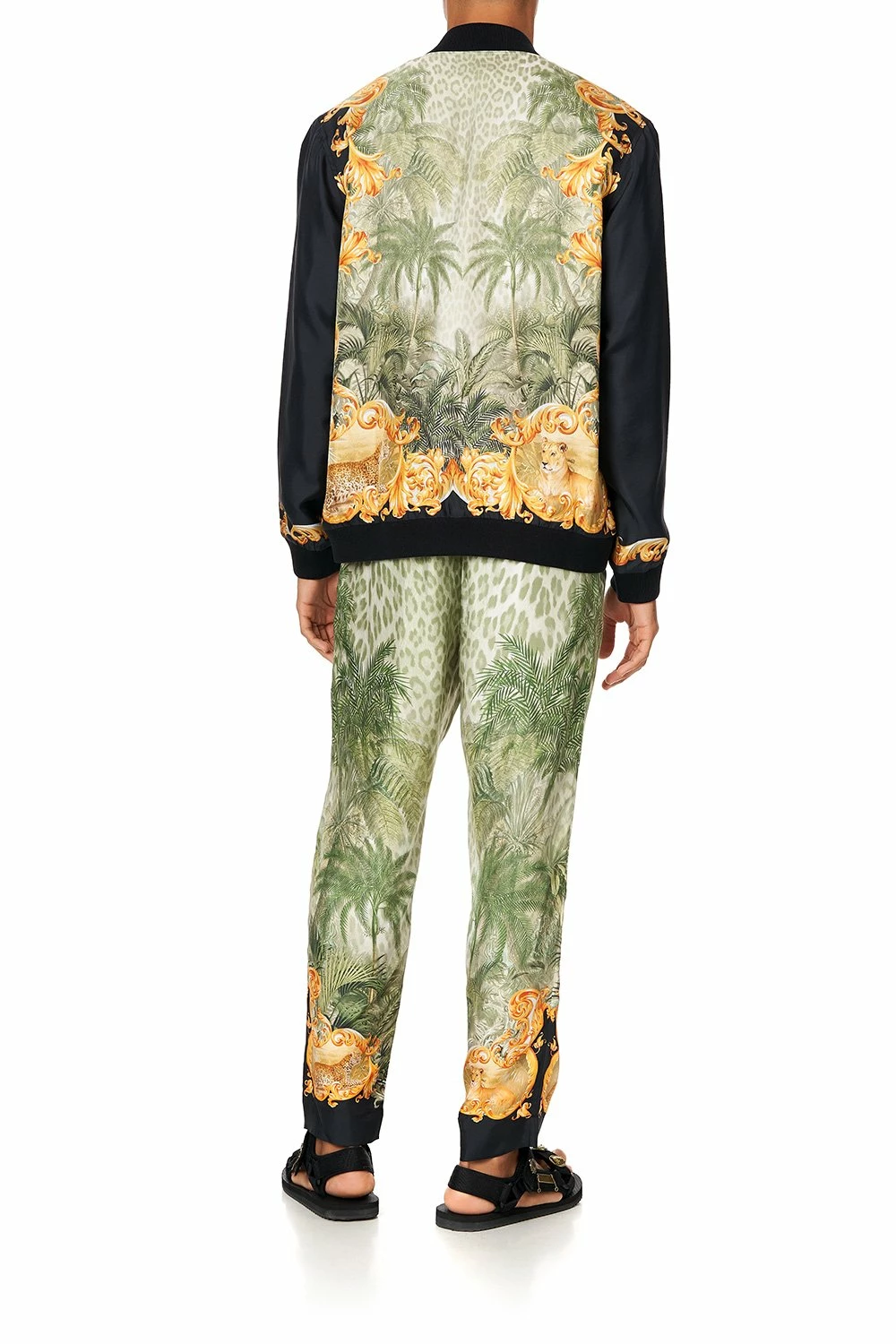 Escape to decades gone by in the Palazzo Of Palms Zip Through Bomber Jacket, an eternal ode to the tantalisingly naughty nineties. Crafted from lavish silk, soft pistachio hues take centre stage amidst leopard print, rainforest palms and ornate golden details. A luxurious final layer, this statement jacket sports zip fastening, ribbed cuff, collar and hem accents, a relaxed silhouette and contrasting black trim and sleeves. Complete your look with the decadent .